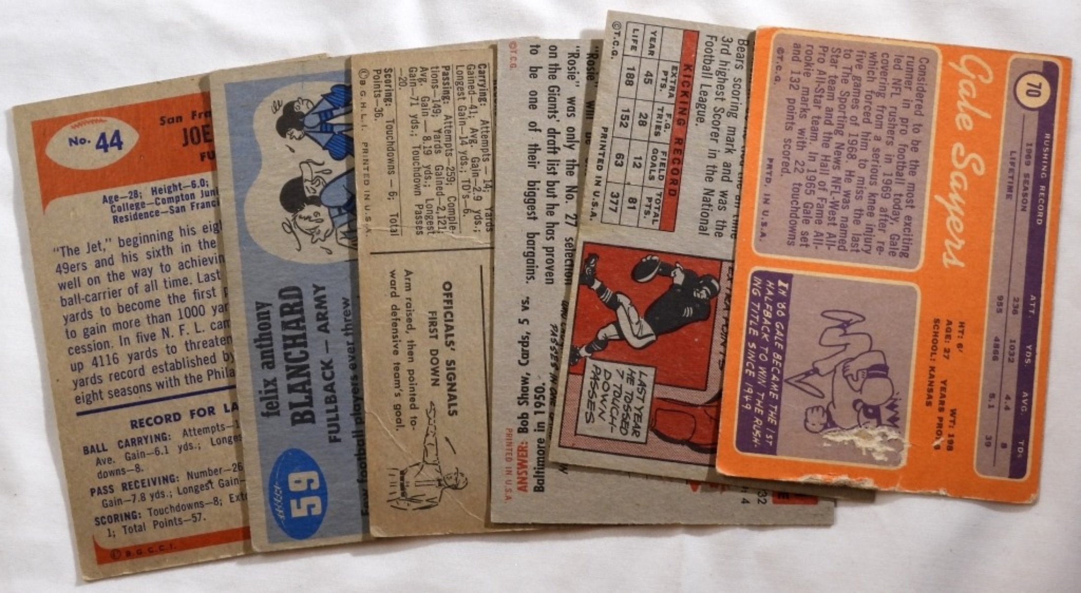 Gale Sayers, Roosevelt Brown, Y. A. Tittle, Joe Perry and more. all in various conditions