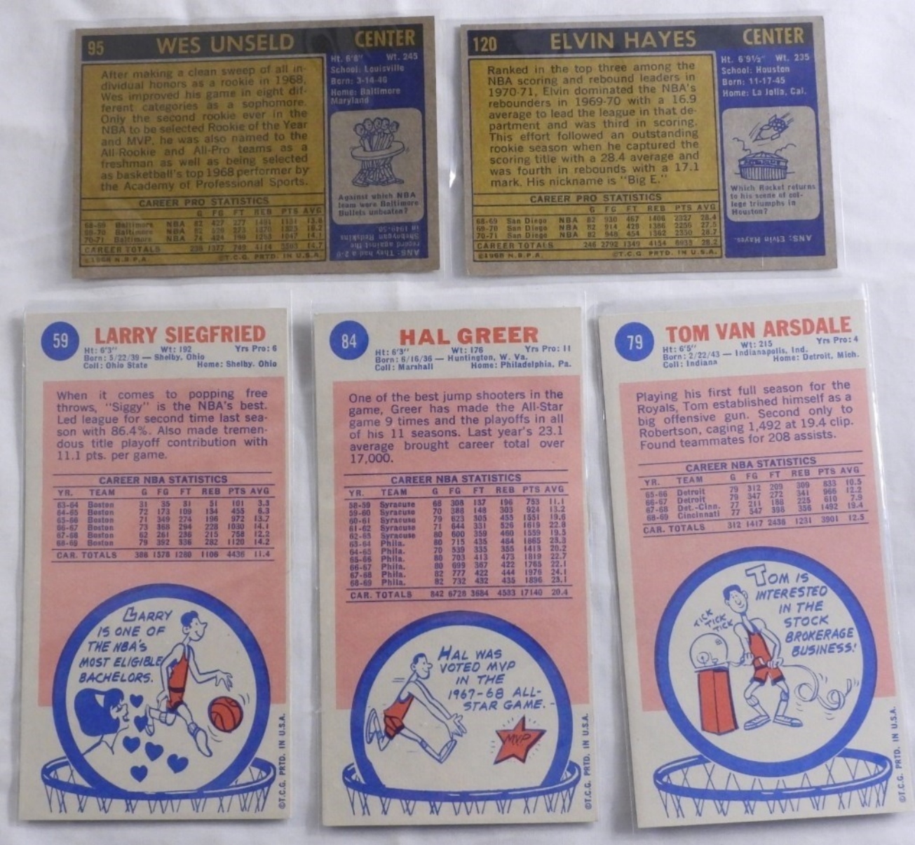 1) Elvin Hayes #120. 2) Wes Unseld #95. 3) Larry Siegfried #59. 4) Hal Greer #84. 5) Tom Van Arsdale #79