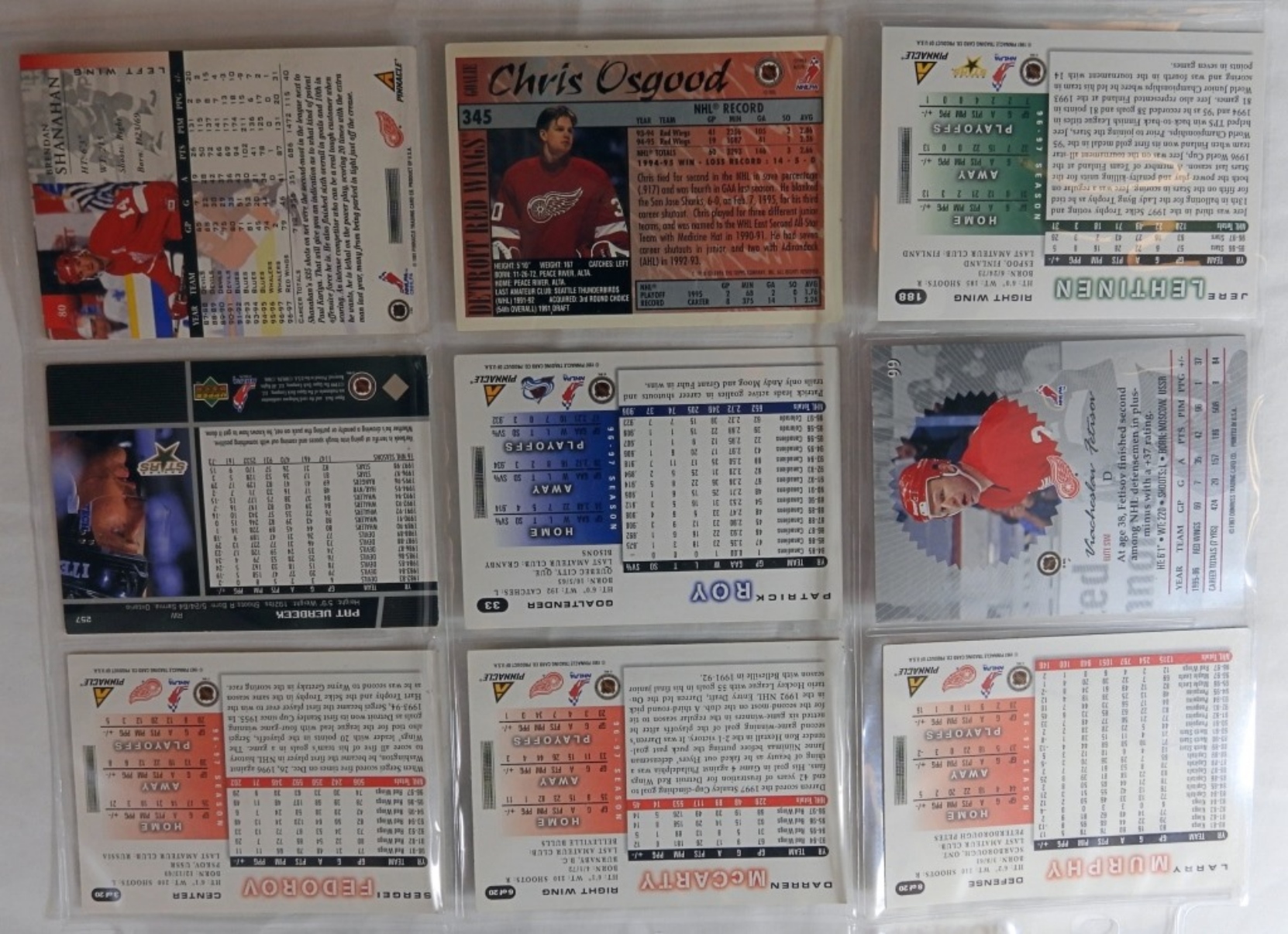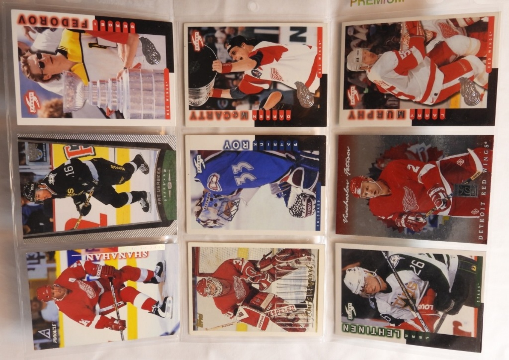 Good condition. Different players such as Pat Werbeck, Patrick Roy, Jere Lehtinen, Larry Murphy and more