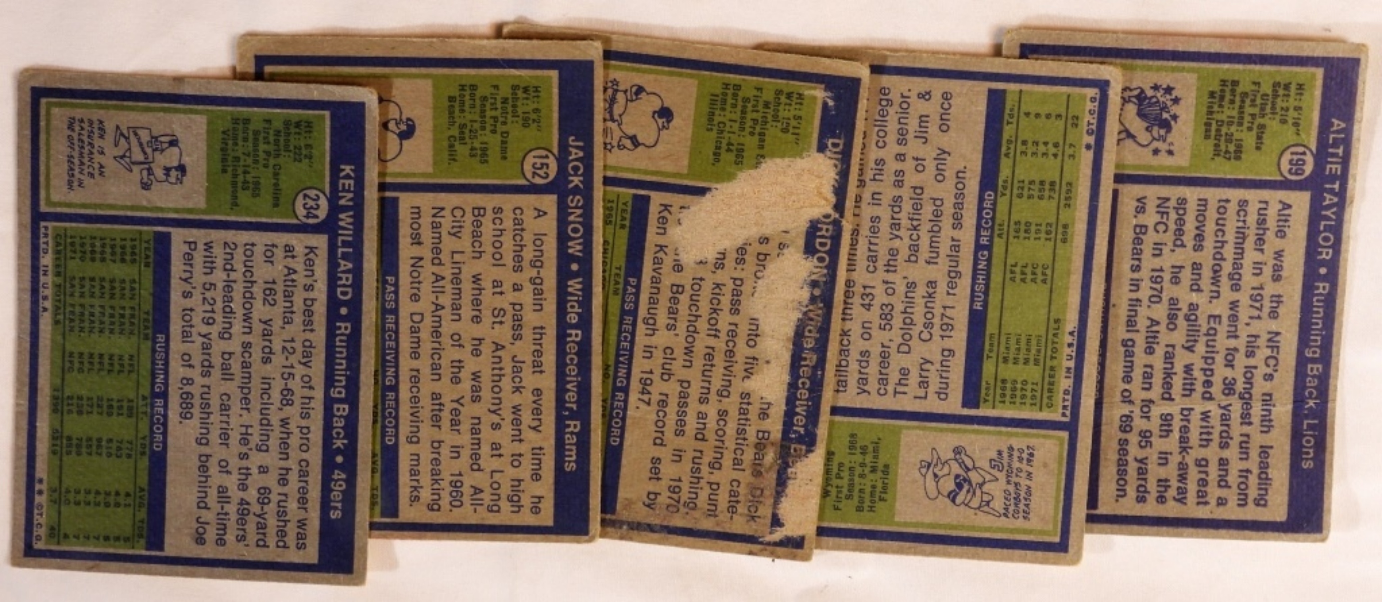Cards include Dick Gordon, Altie Taylor, Jim Kiick and more. Conditions vary 2x4x6