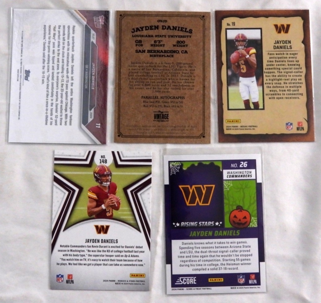 Different types of football cards of Jayde Daniels