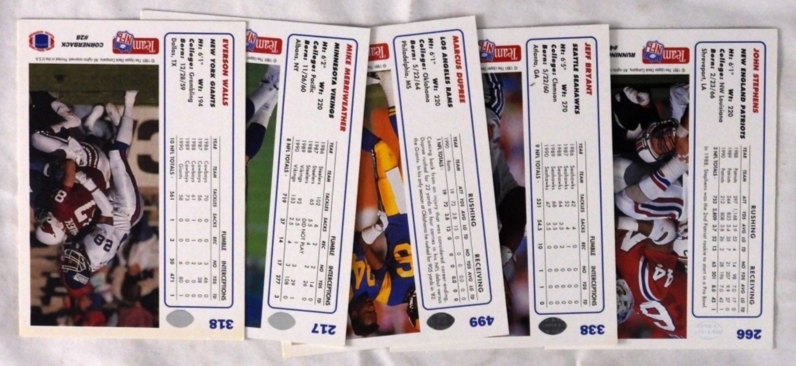 Mike Merriweather, John Stephens, Marcus Dupree, Jeff Bryant, and Everson Walls