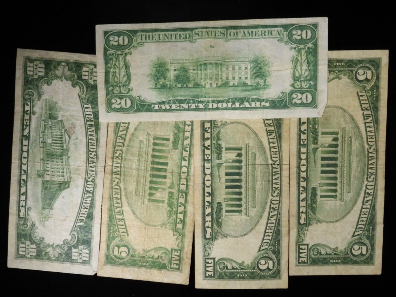 (3) $5, (1) $10, (1) $20
