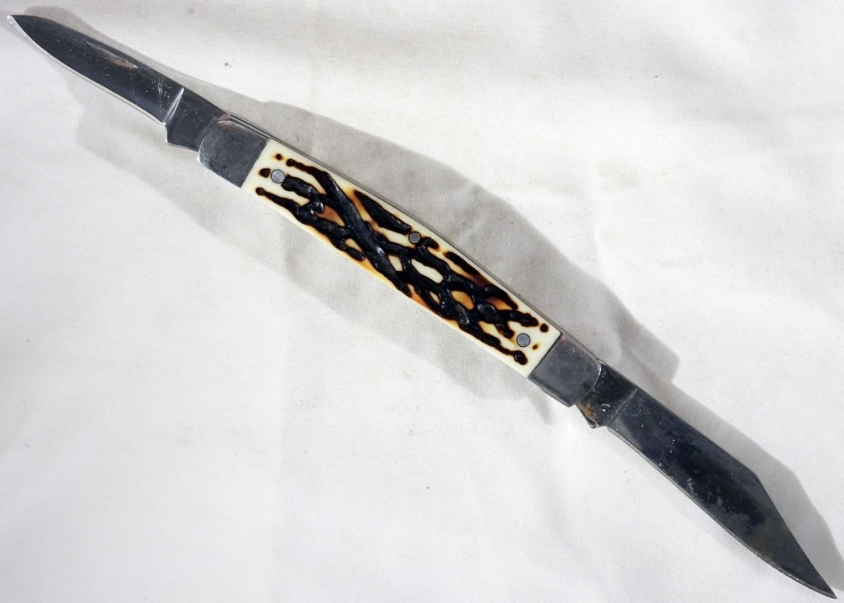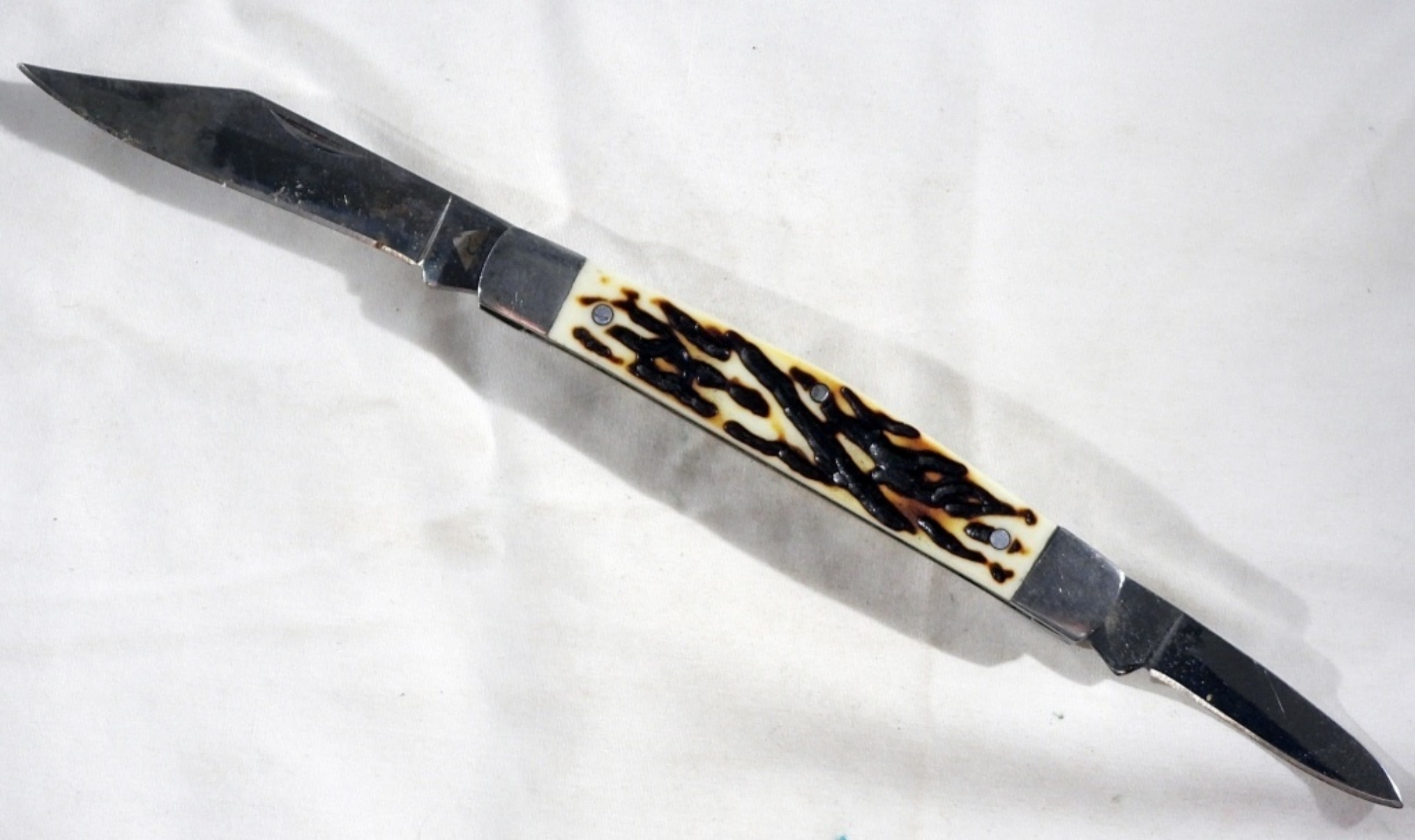 Ozark Trail Faux Bone Handle 3.5Folding Knife Two Blade Pocket Knife