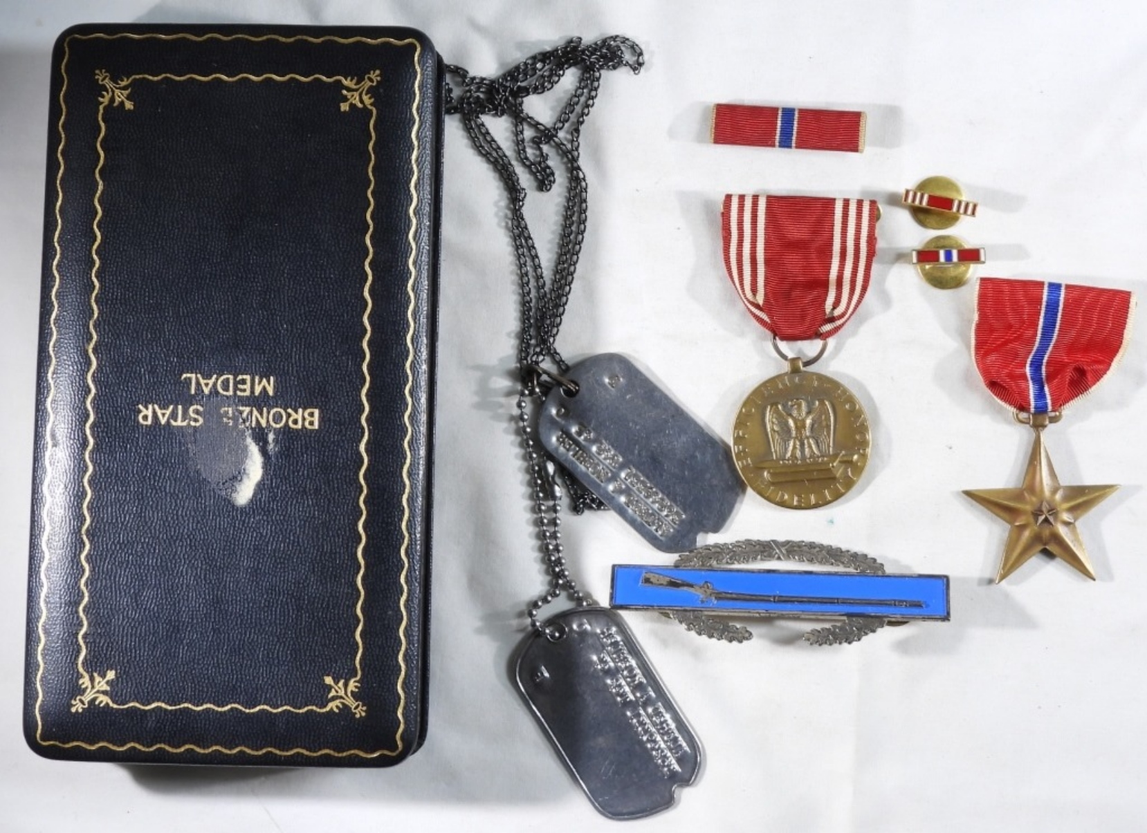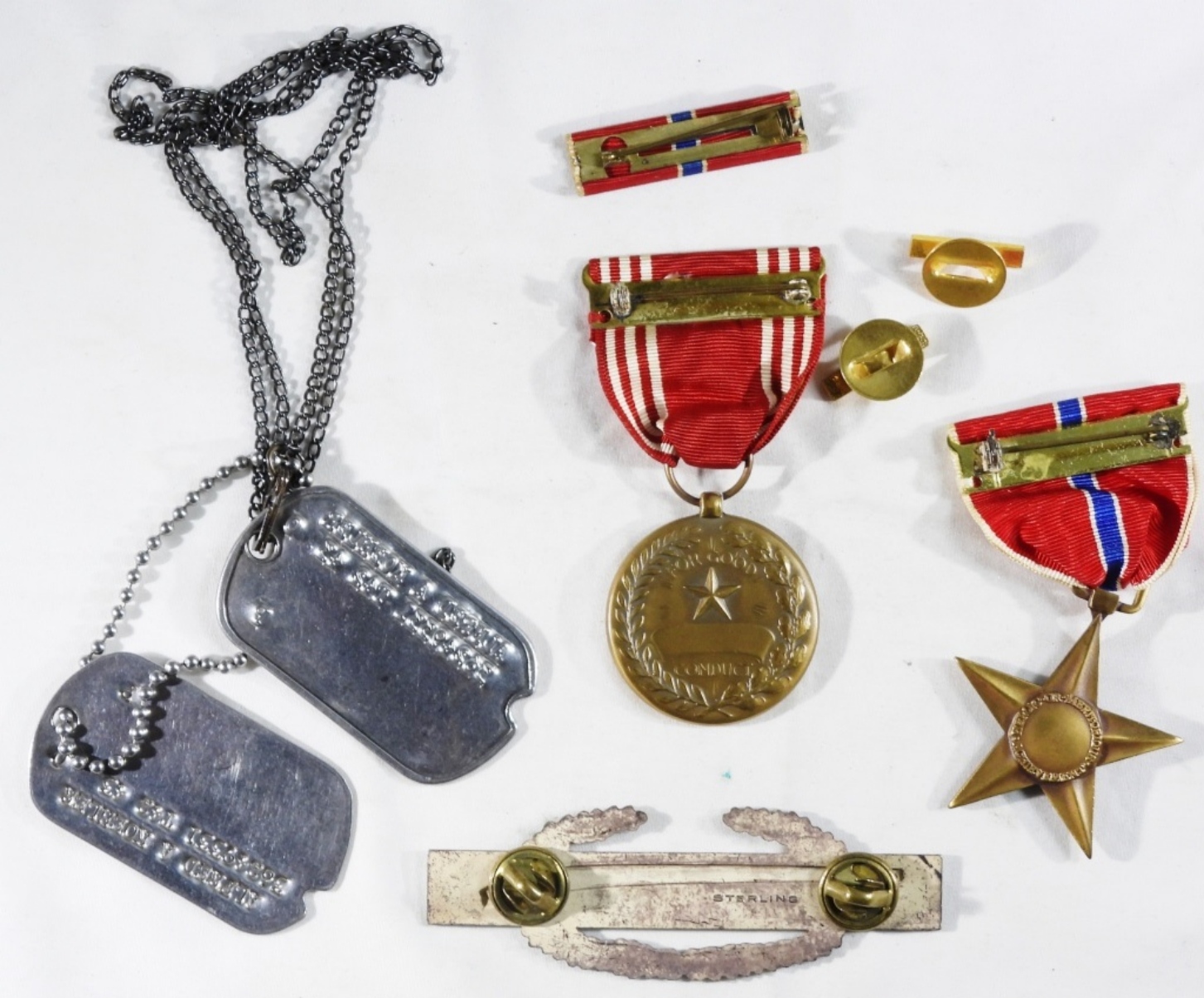 Dog tags, good for conduct medal, bronze star, and more