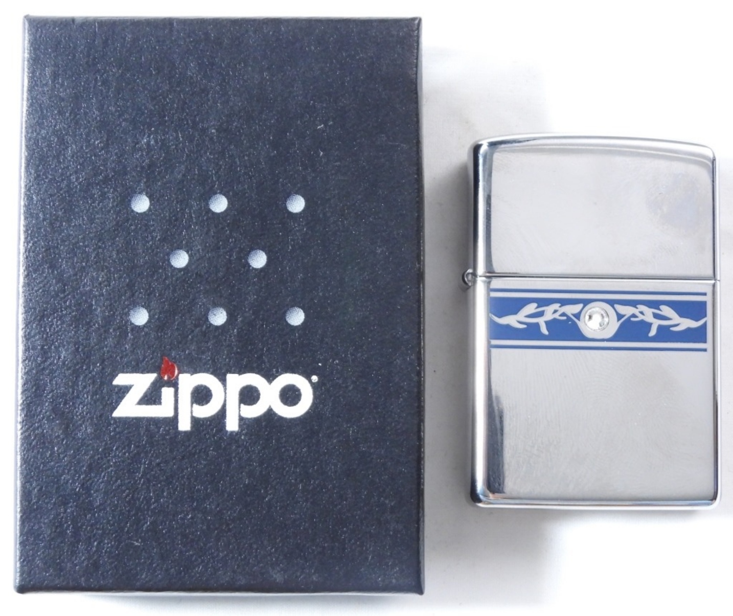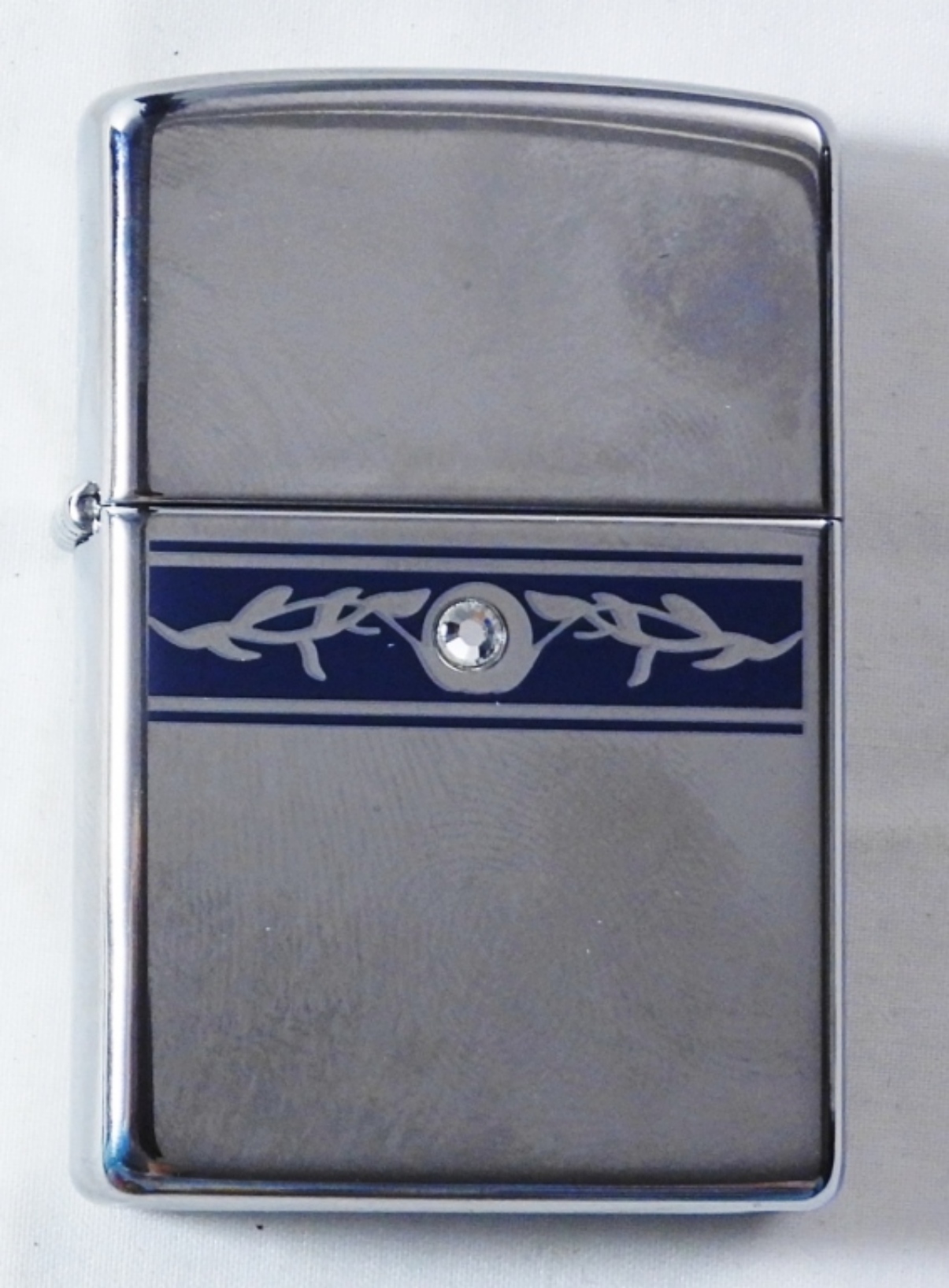 Has a crystallized Sawrovski Element in the middle of the Zippo