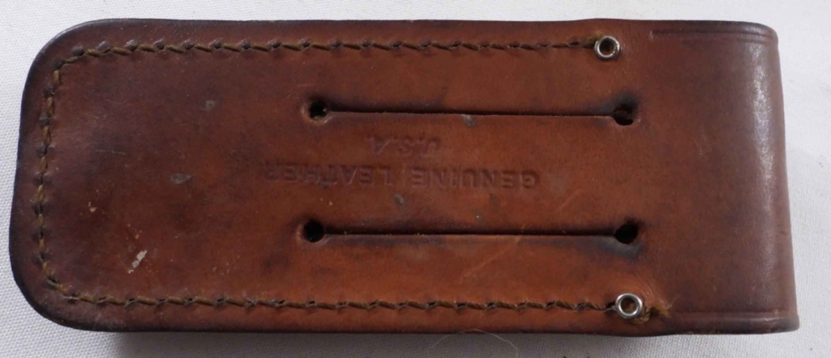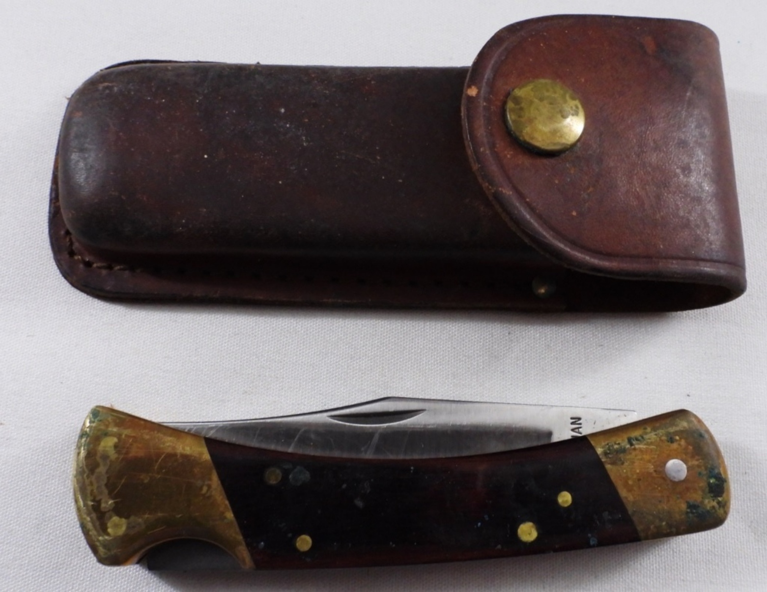 With a brown leather sheath.