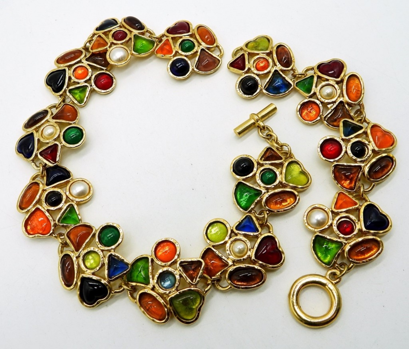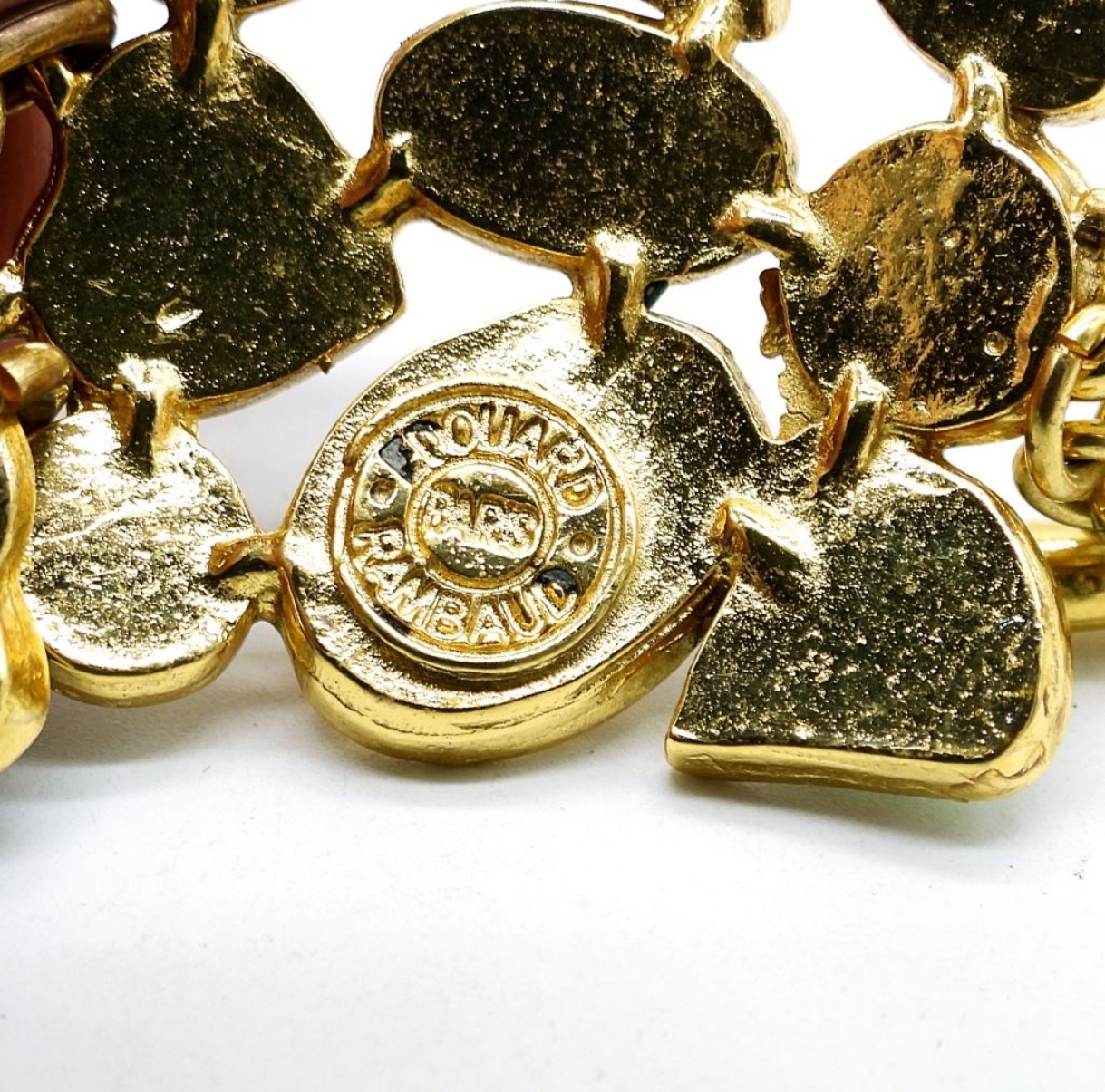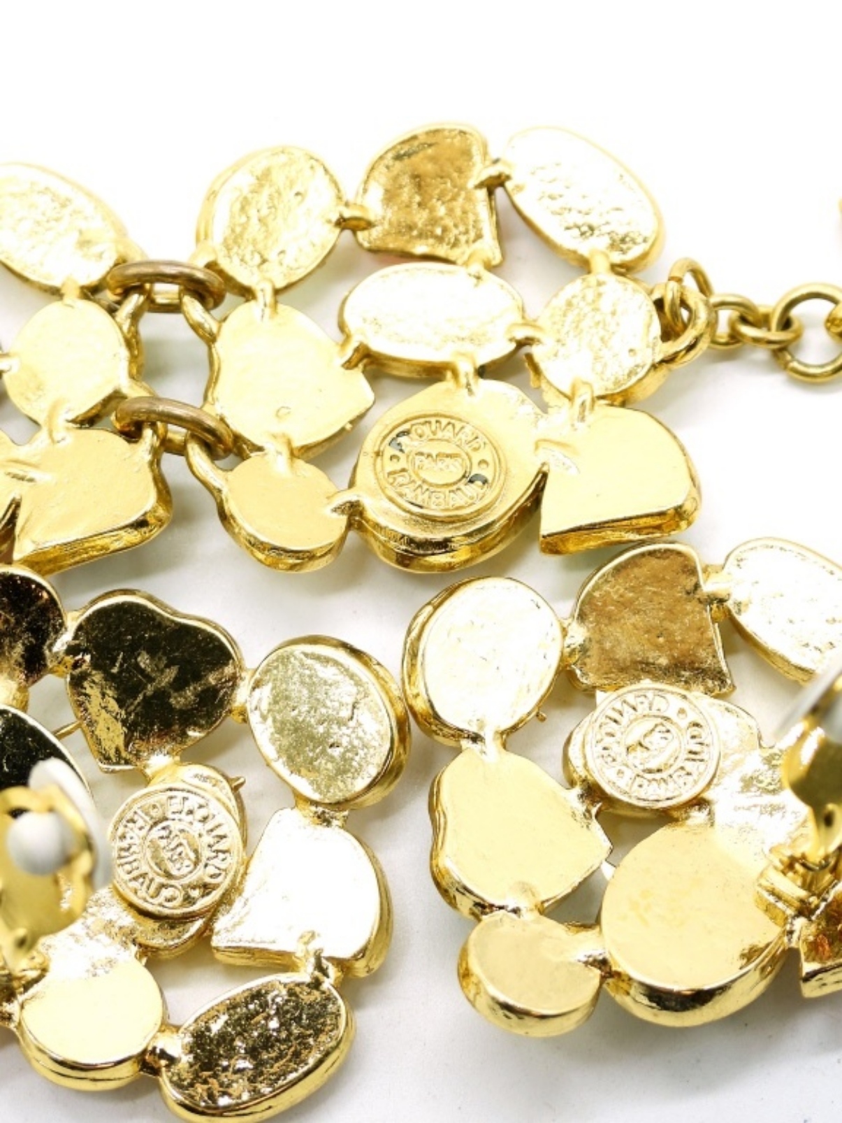 Vintage gold tone Edourd Rambaud Set. Earrings (1.5″x 1.5″), Bracelet 8″ and Necklace 17″. The necklace is in 2 pieces but ONLY need an “O Ring” to fix it. Quick and Easy!