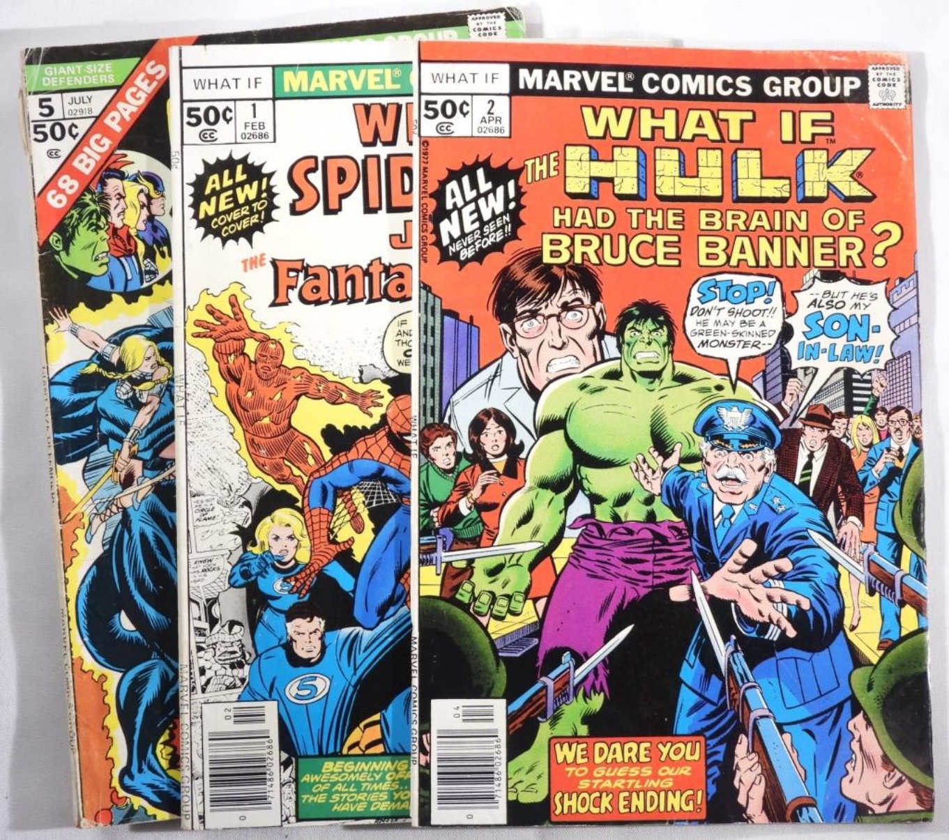 1) What If The Hulk Had The Brain Of Bruce Banner? Number 2. 2) What If Spider-Man Joined The Fantastic Four? Number 1. 3) Giant-Size Defenders Number 5.