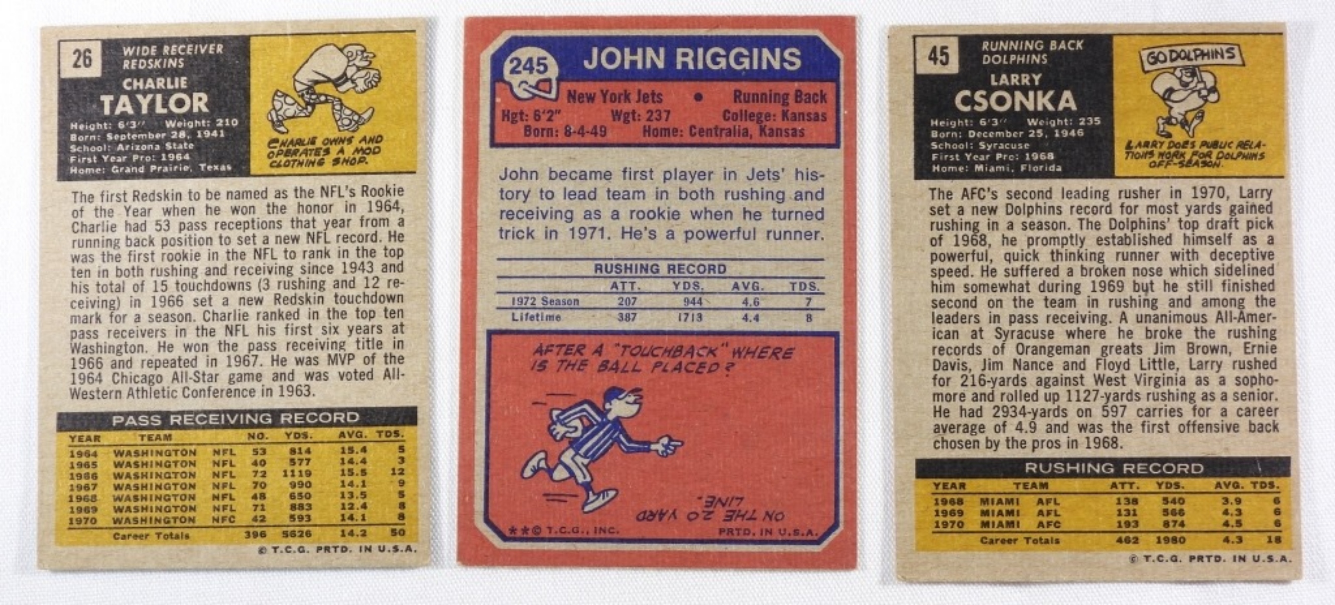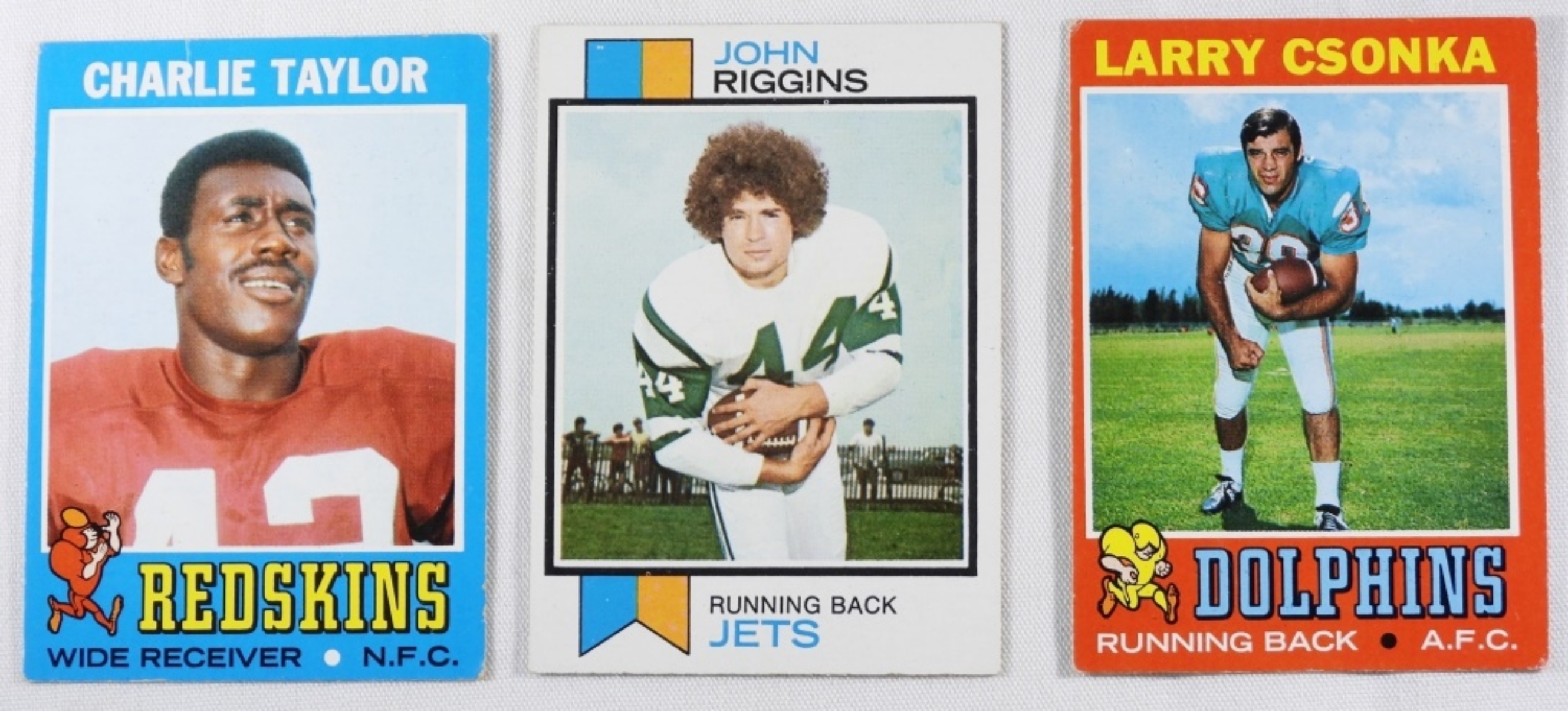 Charlie Taylor, John Riggins, and Larry Csonka. Corners are slightly worn