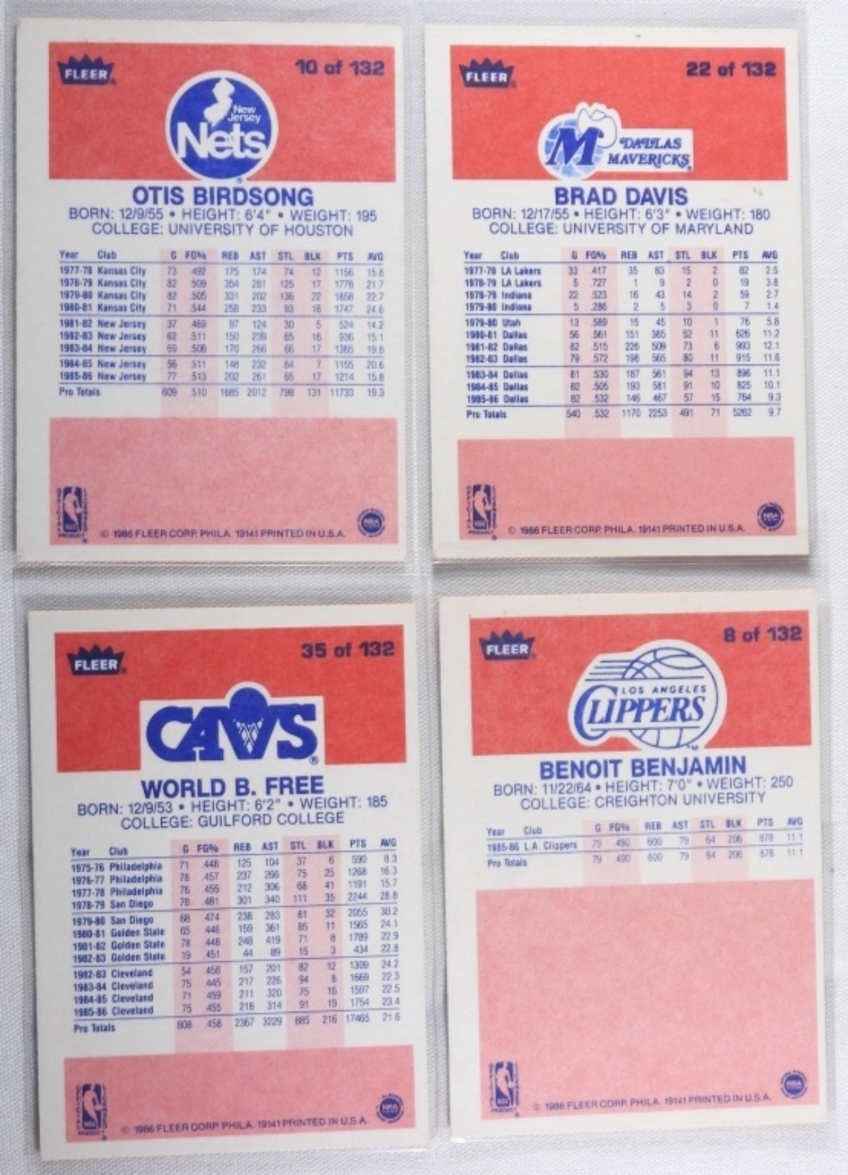 1) Brad Davis # 22 VG. 2) Otis Birdsong #10 VG. 3) Benoit Benjamin #8 VG. 4) World B. Free #35 VG