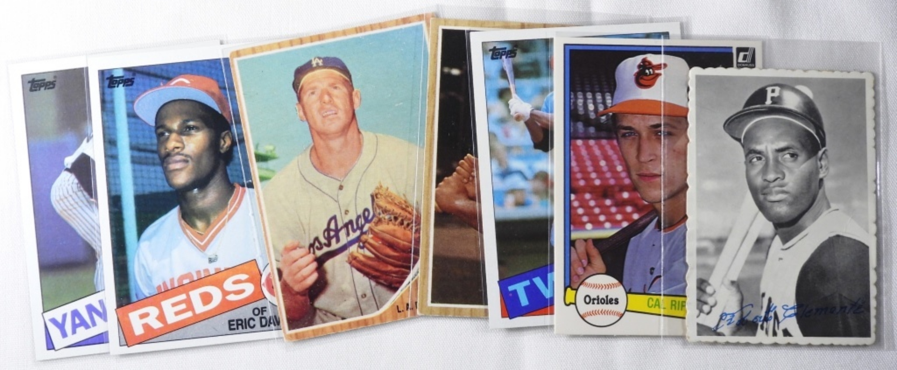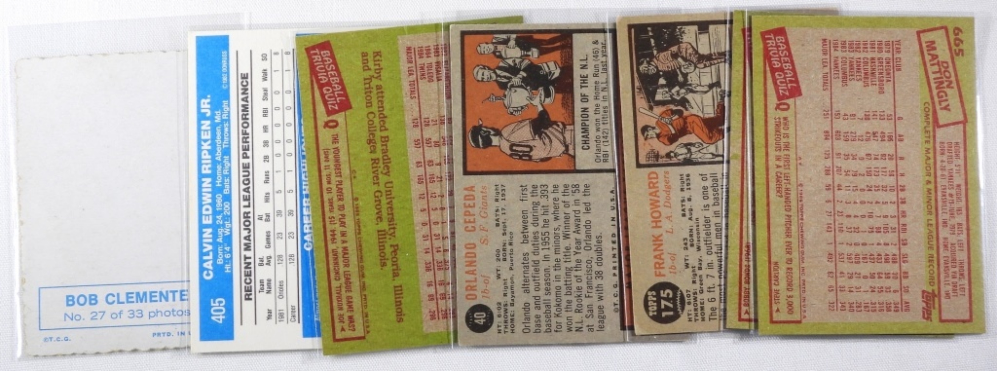 1) Bob Clemente Number 27 VG. 2) Cal Ripken Jr. Number 405 VG. 3) Don Mattingly Number 665 VG. 4) Eric Davis Number 627 VG. 5) Kirby Puckett Number 536 VG. 6) Frank Howard Number 175. 7) Orlando Cepeda Number 40 VG.