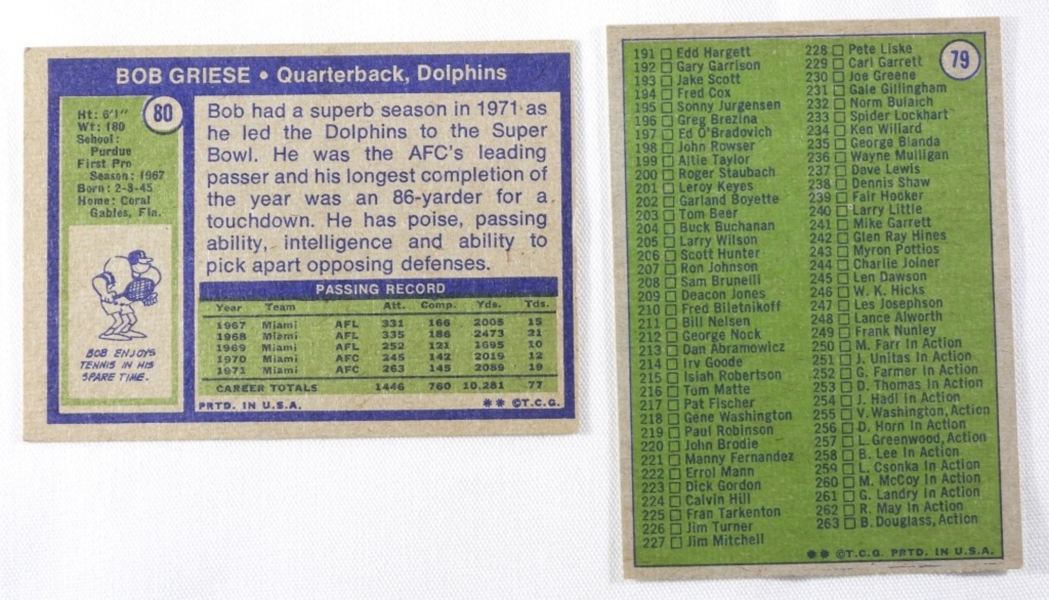 Good condition, one corner on Bob Griese is a little bent but other than that its good