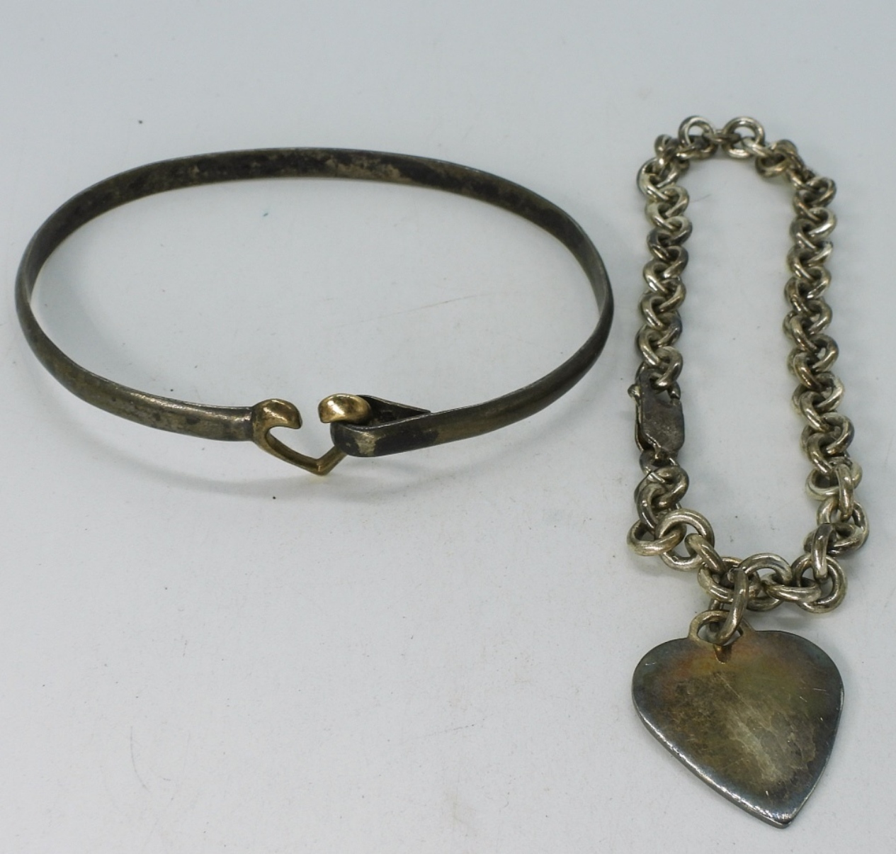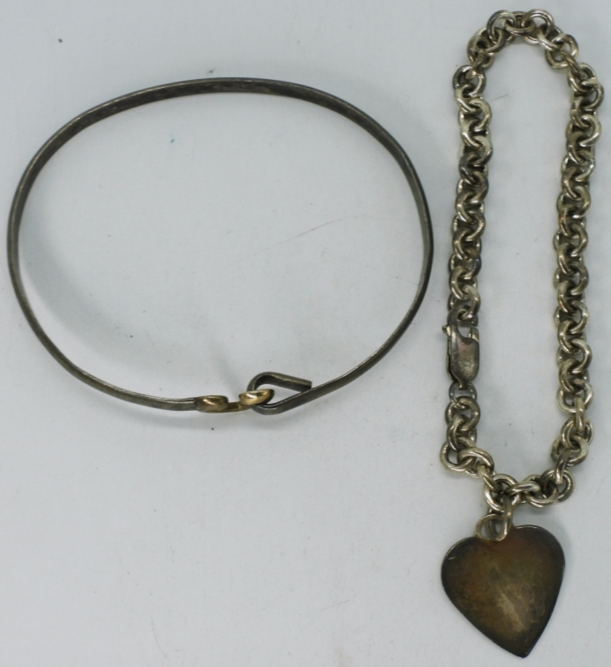 Two sterling heart bracelets, bangle and 8″ chain. (19.1 dwt) (6x4x2)