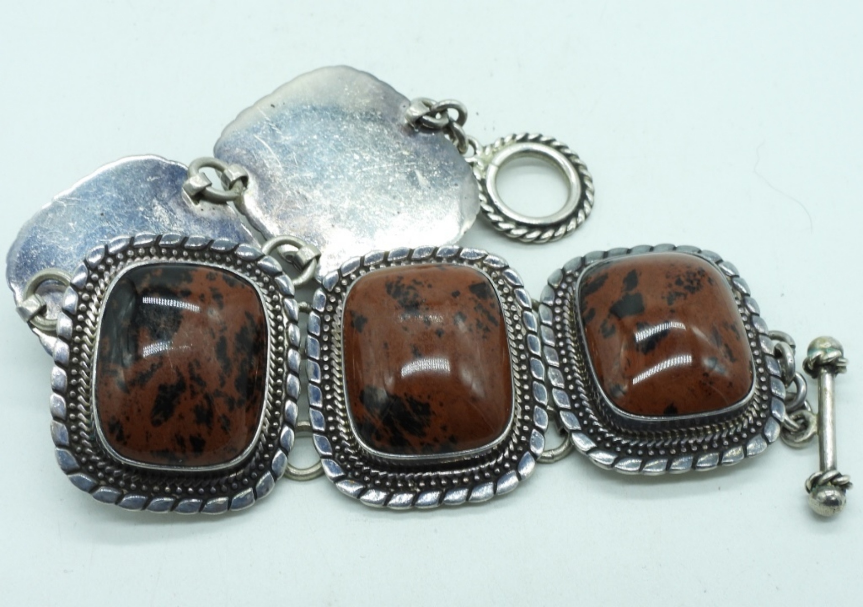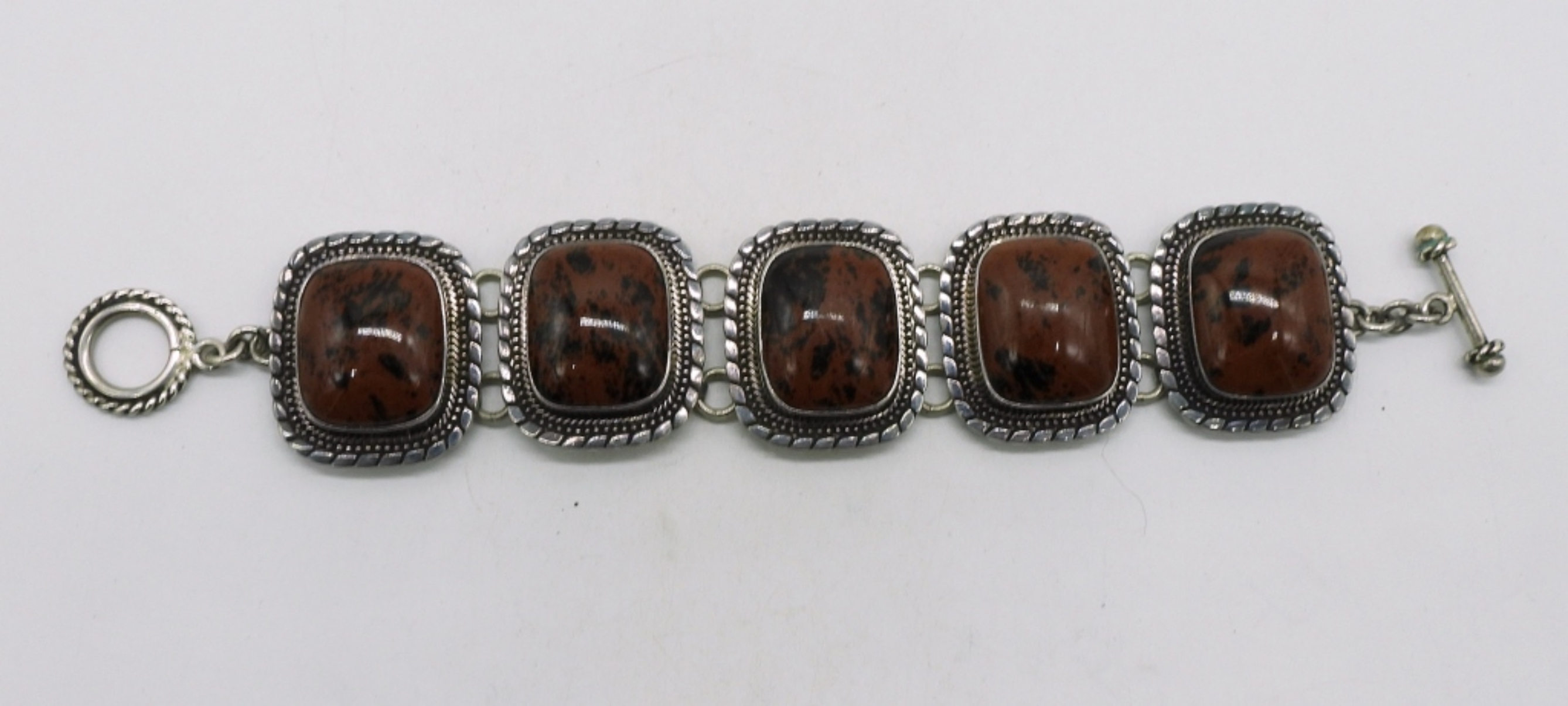 Mahogany Obsidian gemstone, sterling bracelet with toggle clasp. 8″ long. (55 dwt) (6x4x2)
