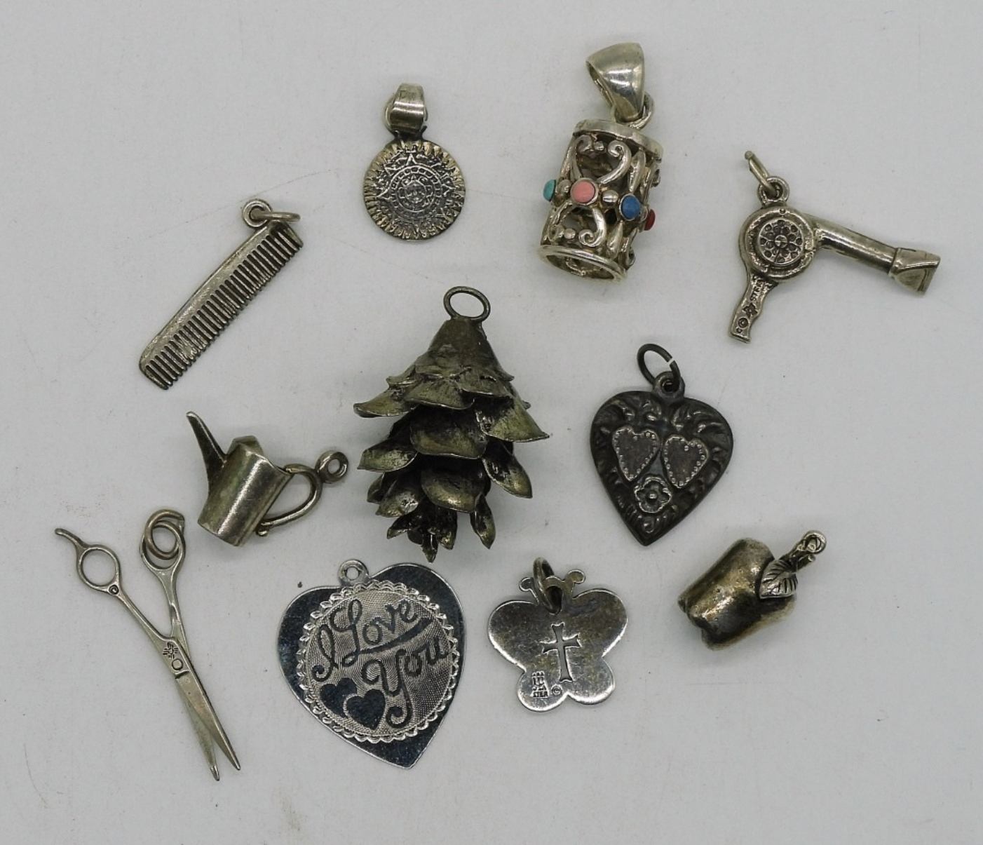 11 Sterling pendants. 1″ – 1.5″. (24.5 dwt) (6x4x2)