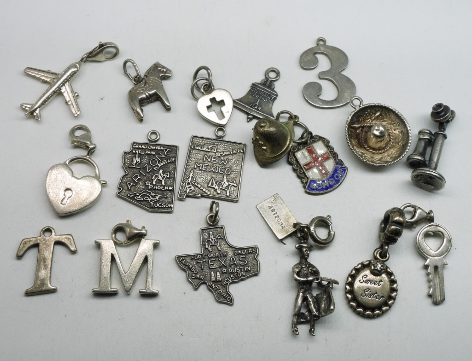 Seventeen sterling charms. Vintage and Modern. (25 dwt) (6x4x2)