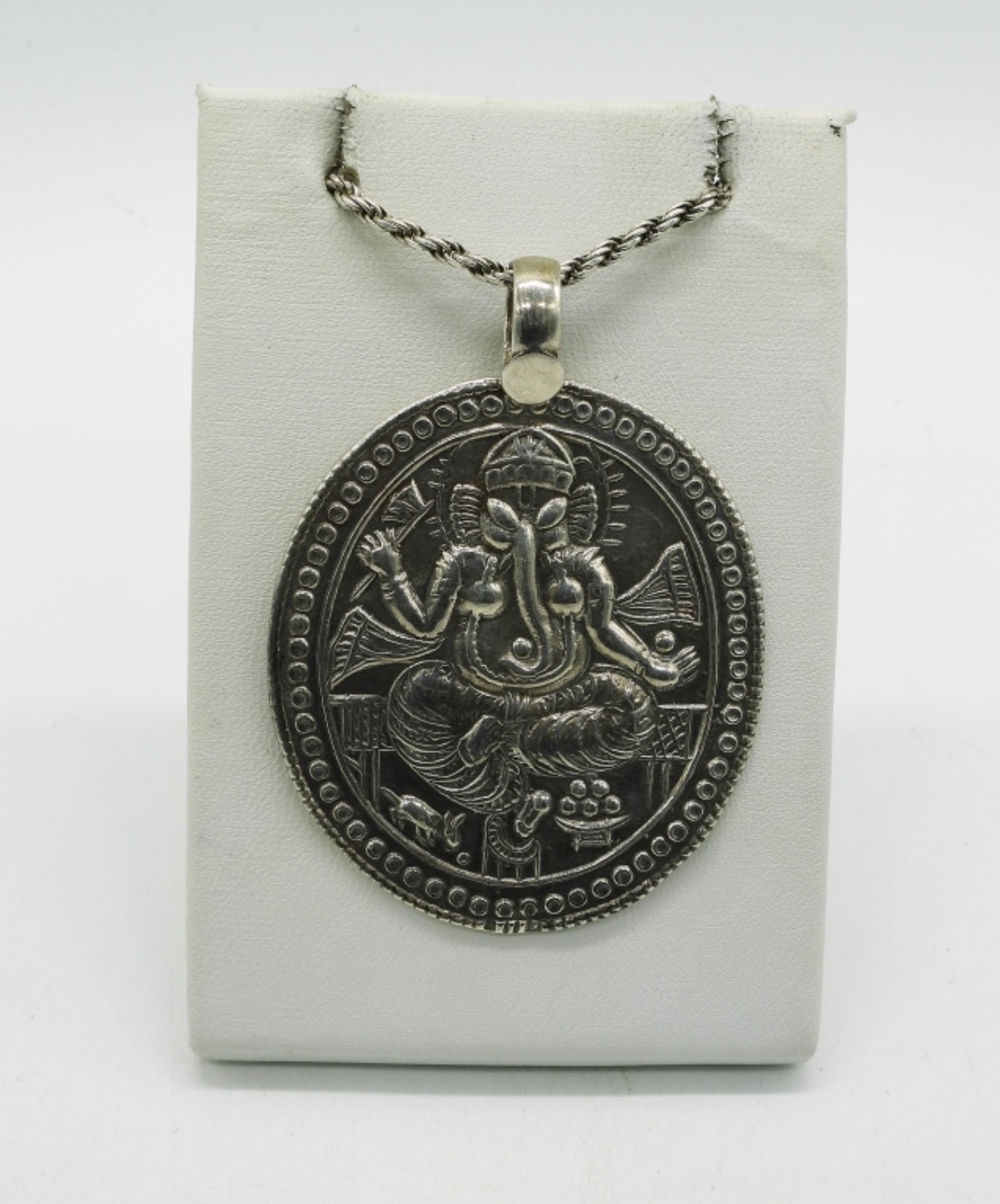 Ganesh sterling pendant, 2.5″. Sterling chain, 16″. (16.1 dwt) (6x4x2)