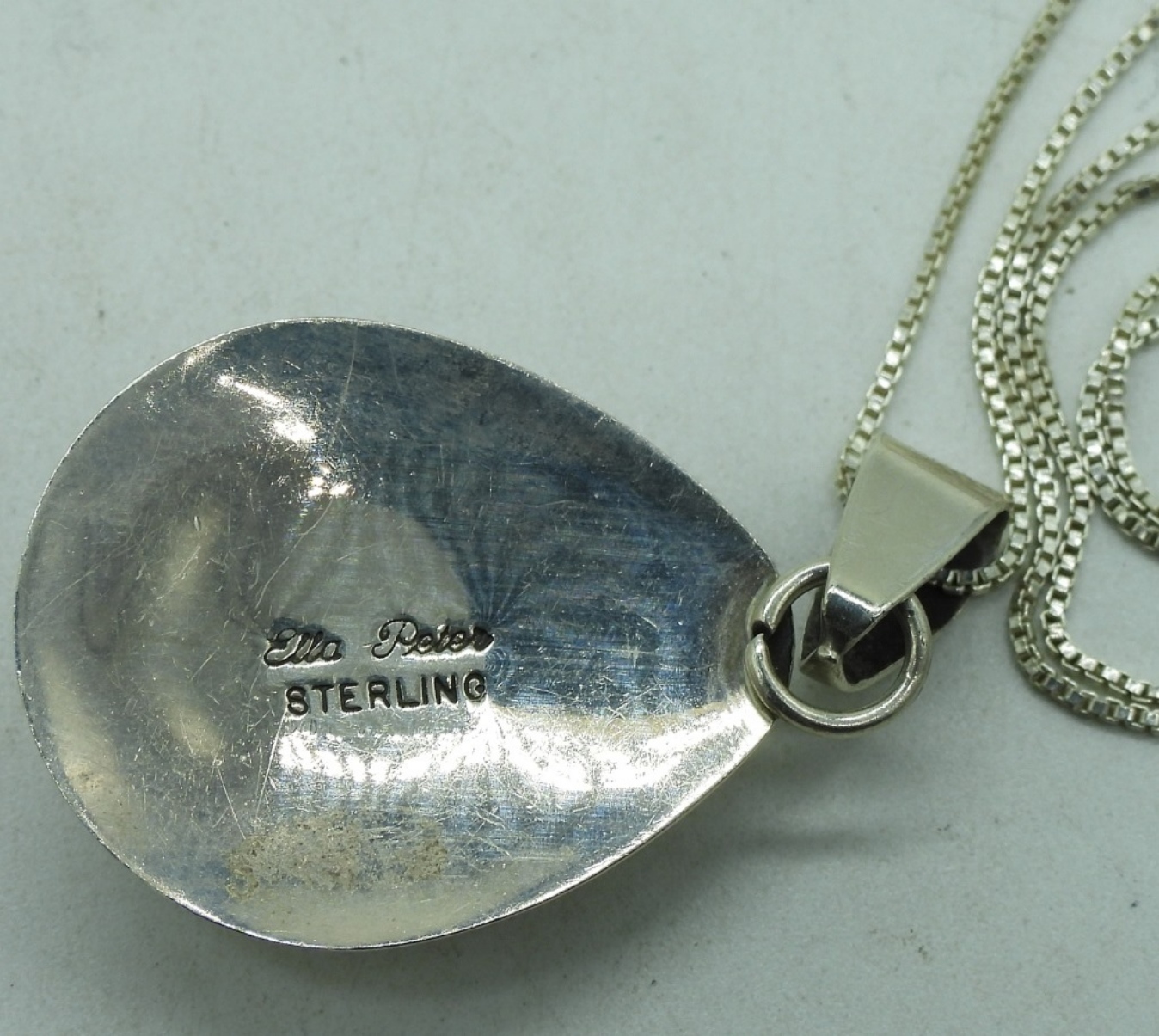 Black onyx pendant, 1 3/4″ long. Sterling chain is 16″. Bracelet has black onyx, mother of pearl and marcasite’s. 8″ long. (18.6 dwt) (6x4x2)