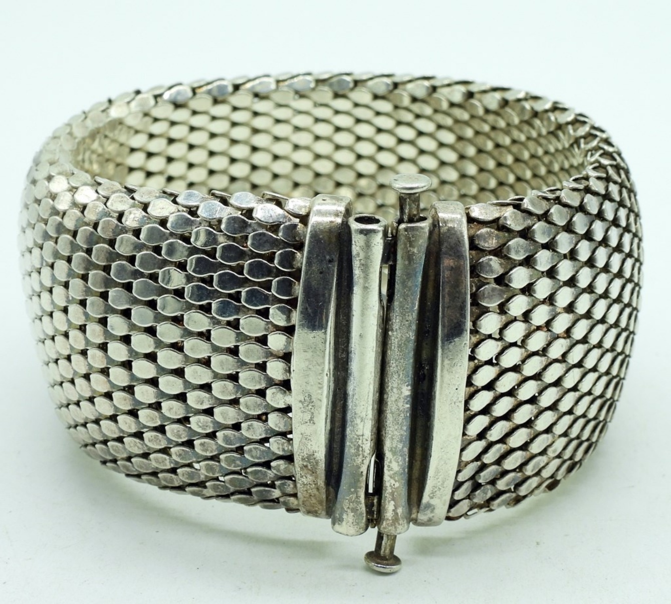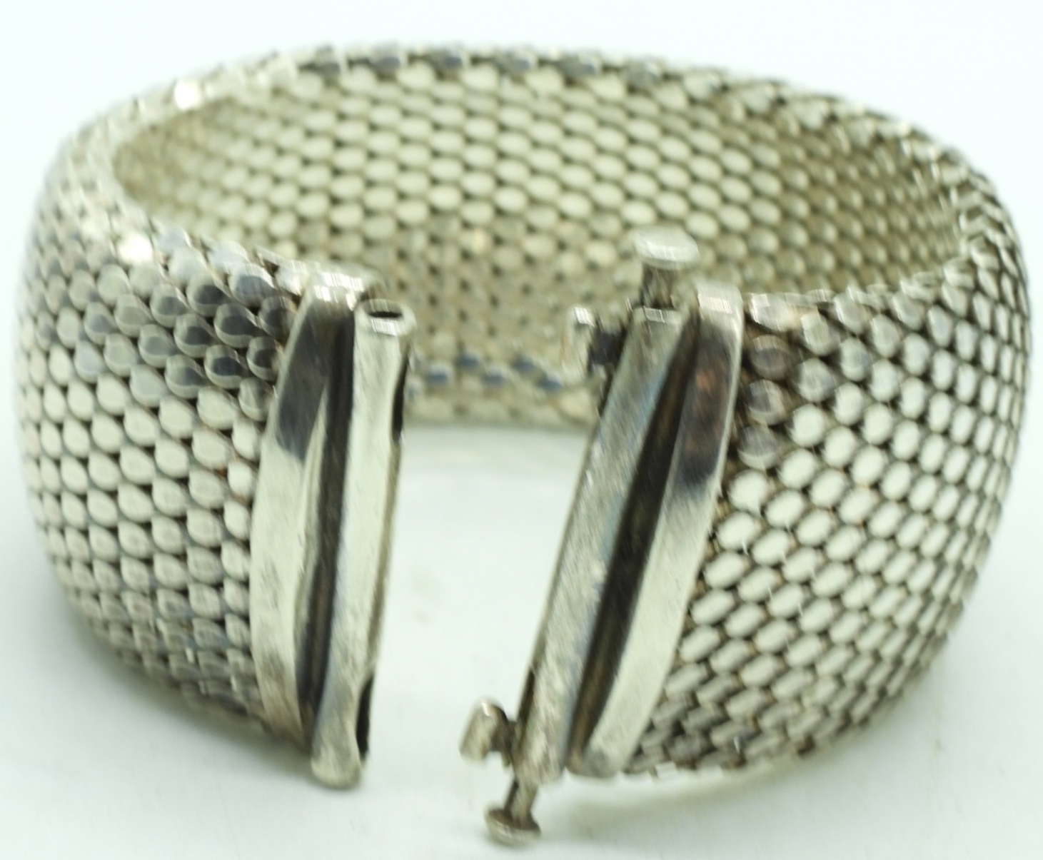 Mesh sterling bracelet, 7″ long and 1.5″ wide. (32.7 dwt) (6x4x2)