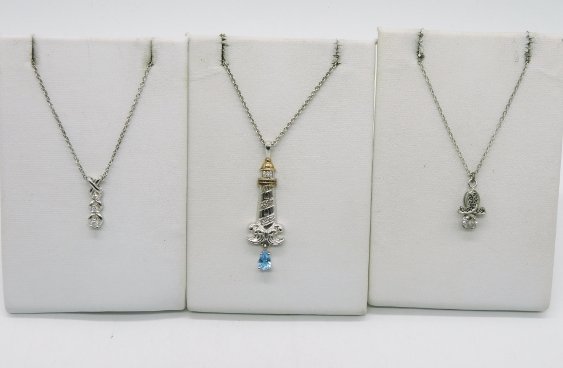 Three sterling fashion necklaces. 17″ & 18″ long sterling chains. (6.3 dwt) (6x4x2)