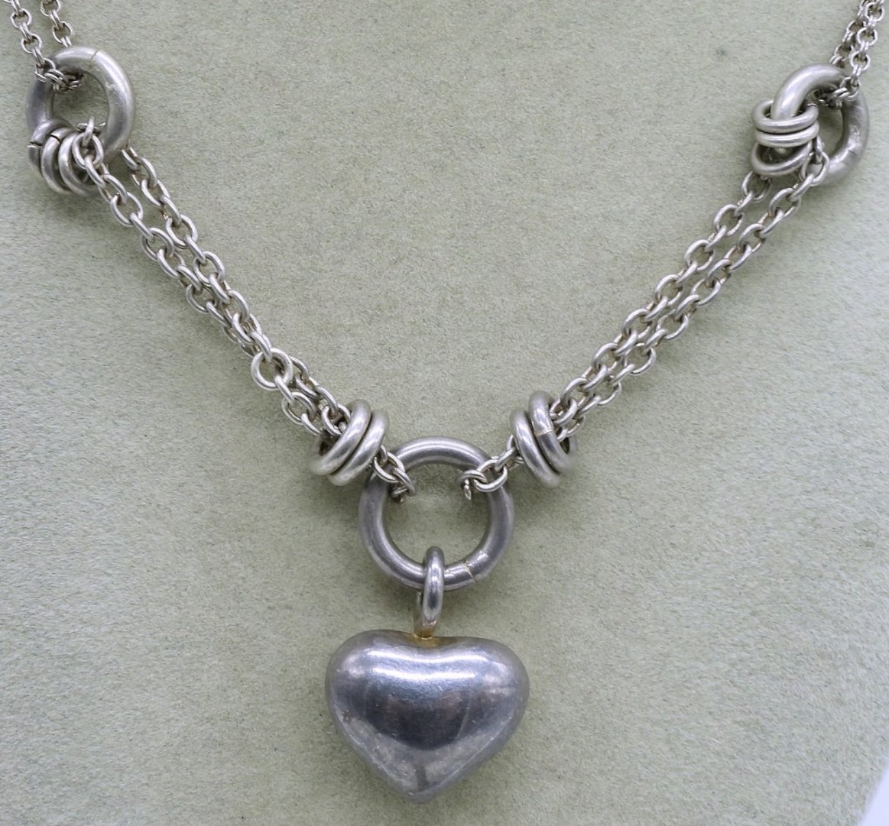 Multi strand heart necklace, 18″. Matching bracelet, 7.5″. (29 dwt) (6x4x2)