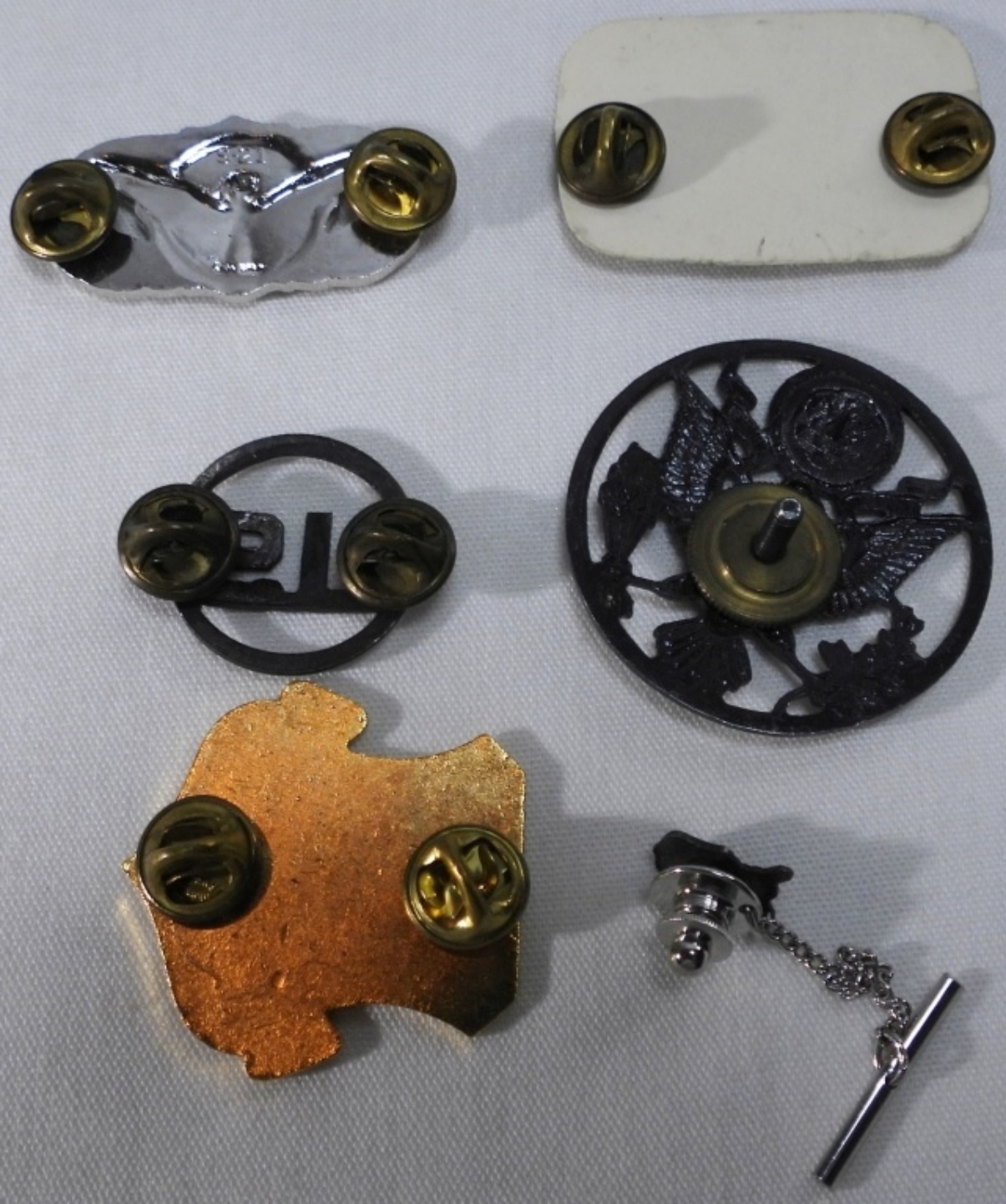 1) Air Training Command. 2) Air Force Senior Security Police Badge. 3) U.S.A.F Enlisted Collar Insignia. 4) U.S.A.F Cap Device for enlisted members. 5) U.S.A.F tie pin clasp. 6) U.S.A.F Insignia Pin