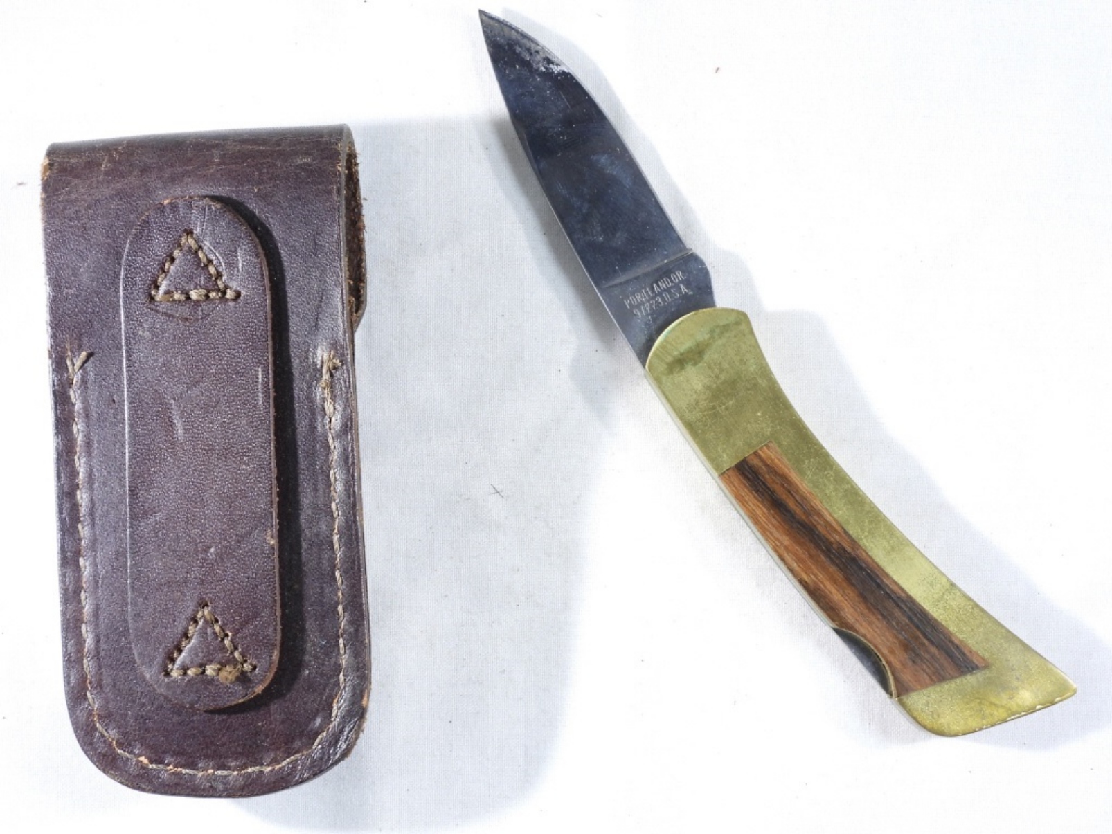 With a brown leather sheath