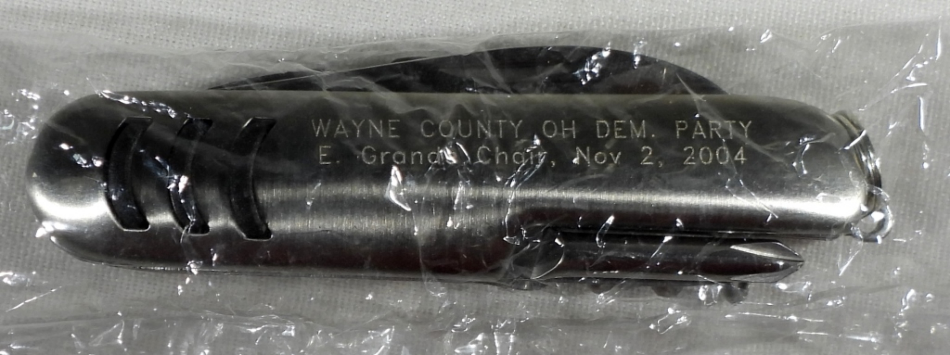 Engraved Wayne County OH Dem. Party E. Grade chair, November 2, 2004, on the other side J. Kerry Democrat, Pres J. Edwards V.P. Nov. 2, 2004 new in box