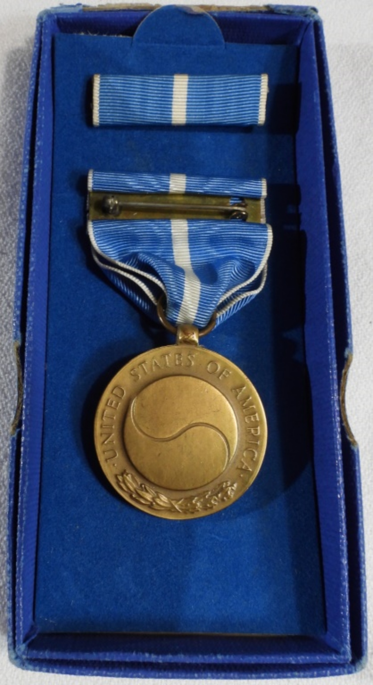 2 Campaign Service Medals, A vintage Korean War US Military United Nations Campaign Service Medal / in box, and a Korean War Service Medal & Ribbon Bar set / in box.