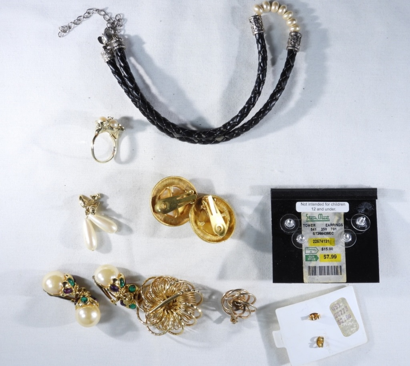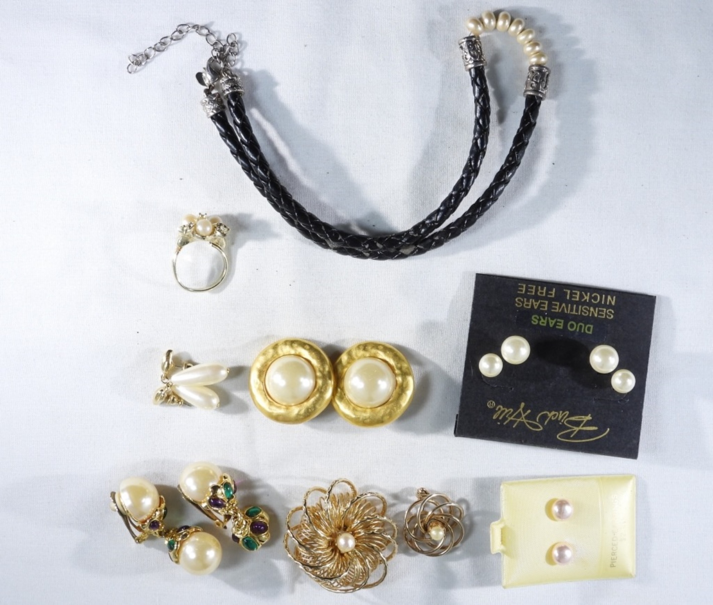 (2) Pendants, (2) Pair of clip-on earrings, (4) Pair of post-earrings, (1) Necklace, & (1) Ring size: 6.5