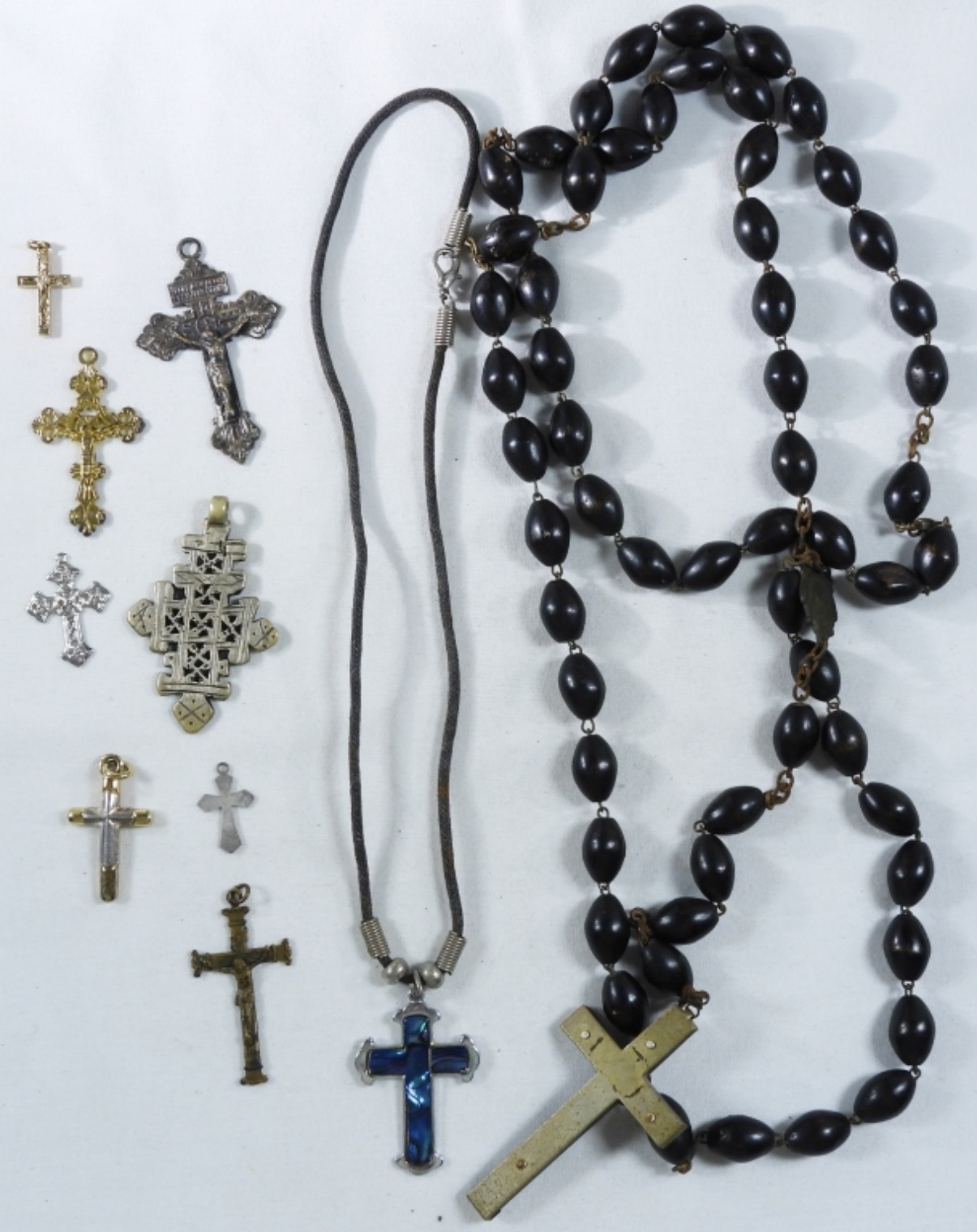 22″ Rosary, cross necklace, (8) Crosses