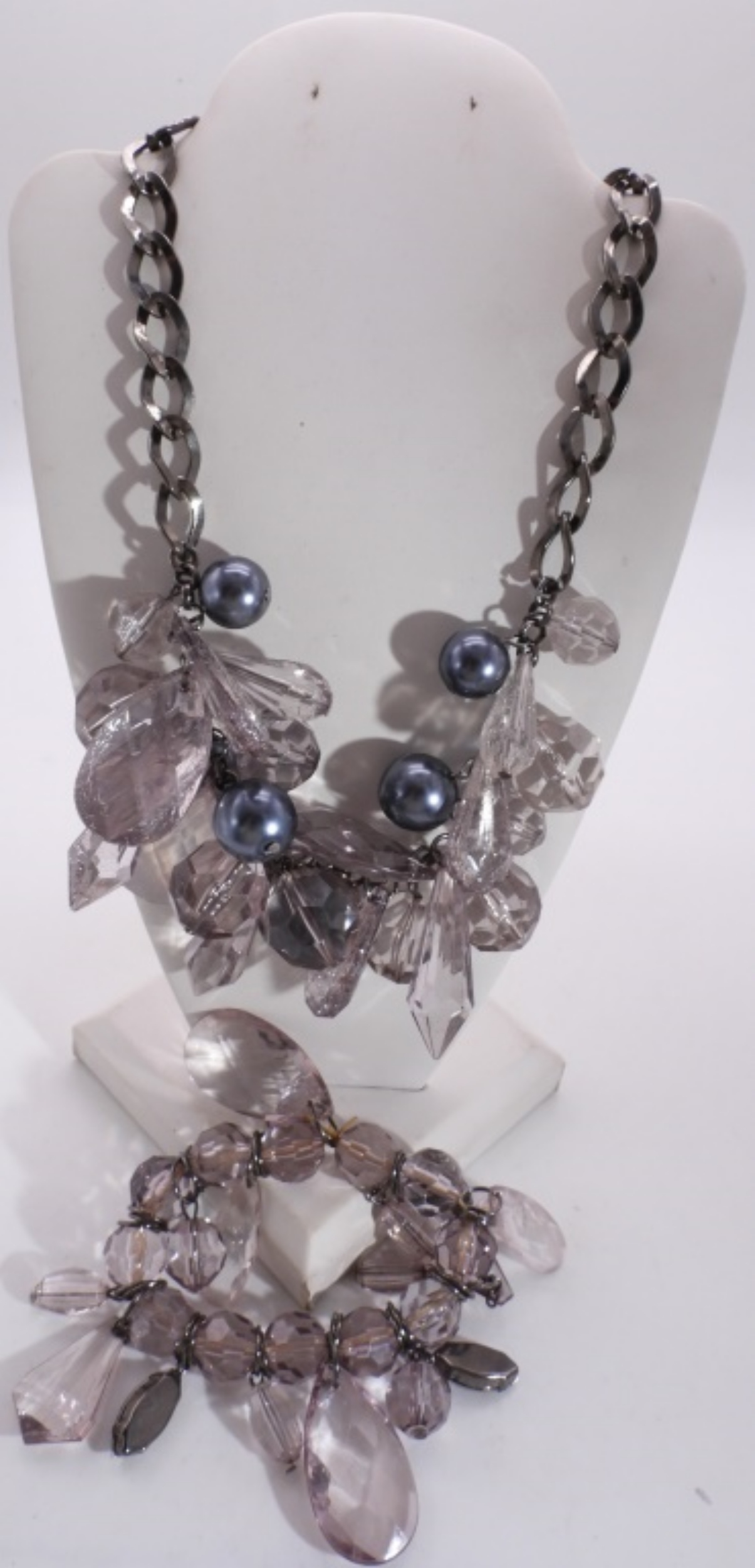 Beaded Fashion Set- black and clear beads. Necklace 16-22″.