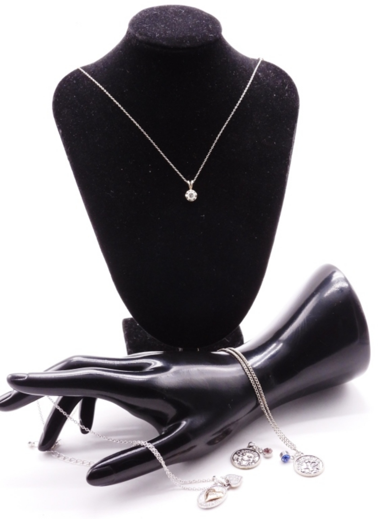 Charm necklaces with extra pendant.