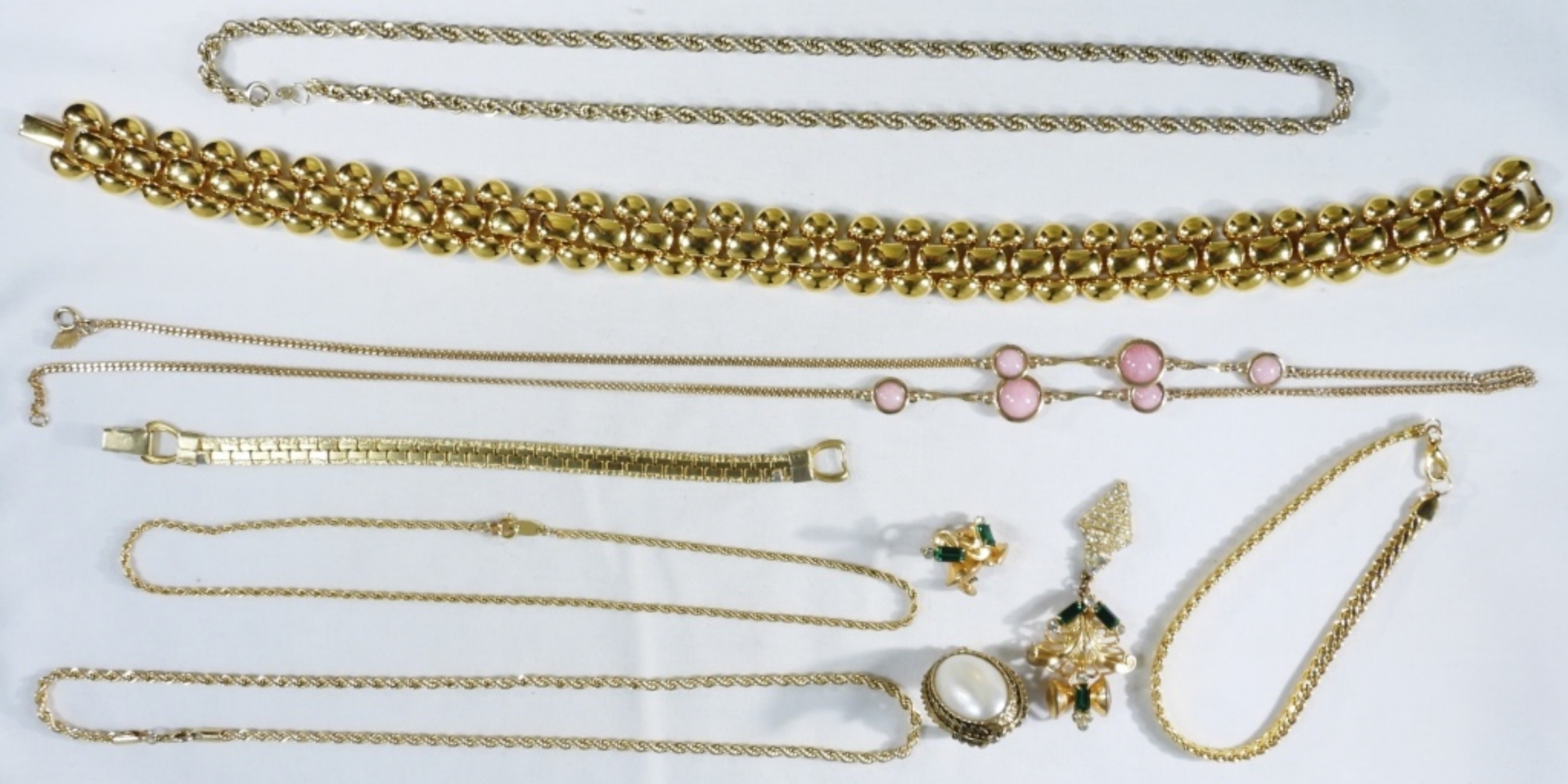 (5) Necklaces, (2) Bracelets, (1) Brooch, (1) Pair of screw-back earrings, (1) Ring size:6