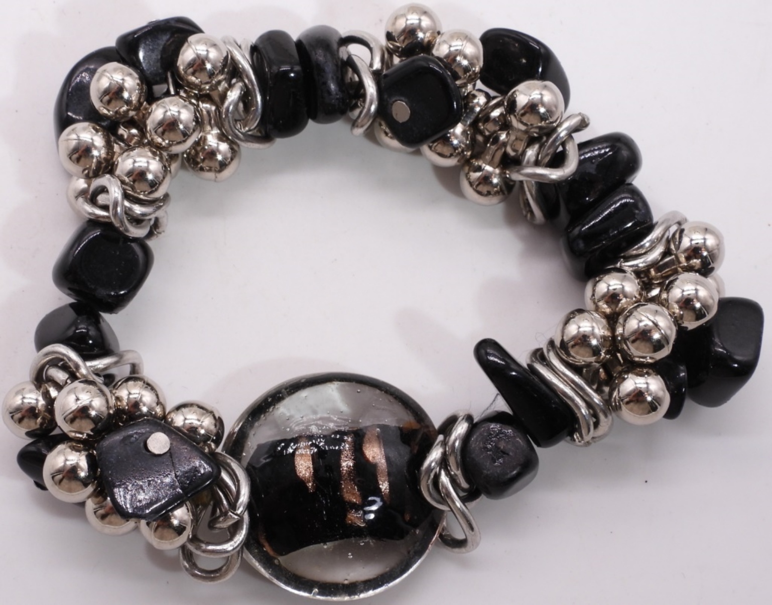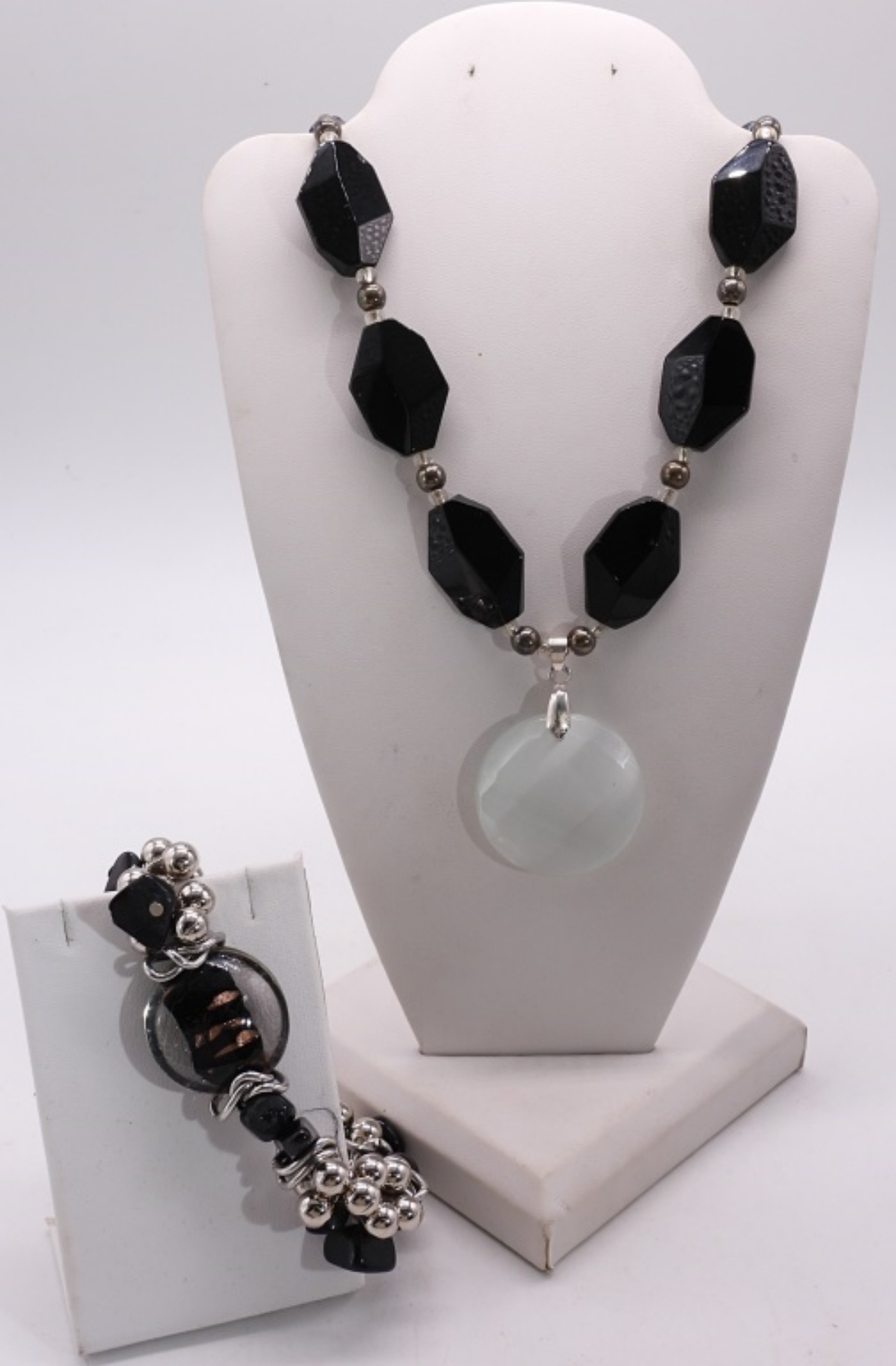 Black beaded fashion lot with 16″ necklace and bracelet.