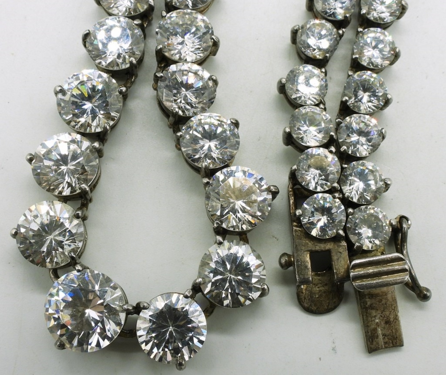 Sterling simulated diamond necklace, 17″ long. Very pretty piece. (29 dwt) (6x4x2)