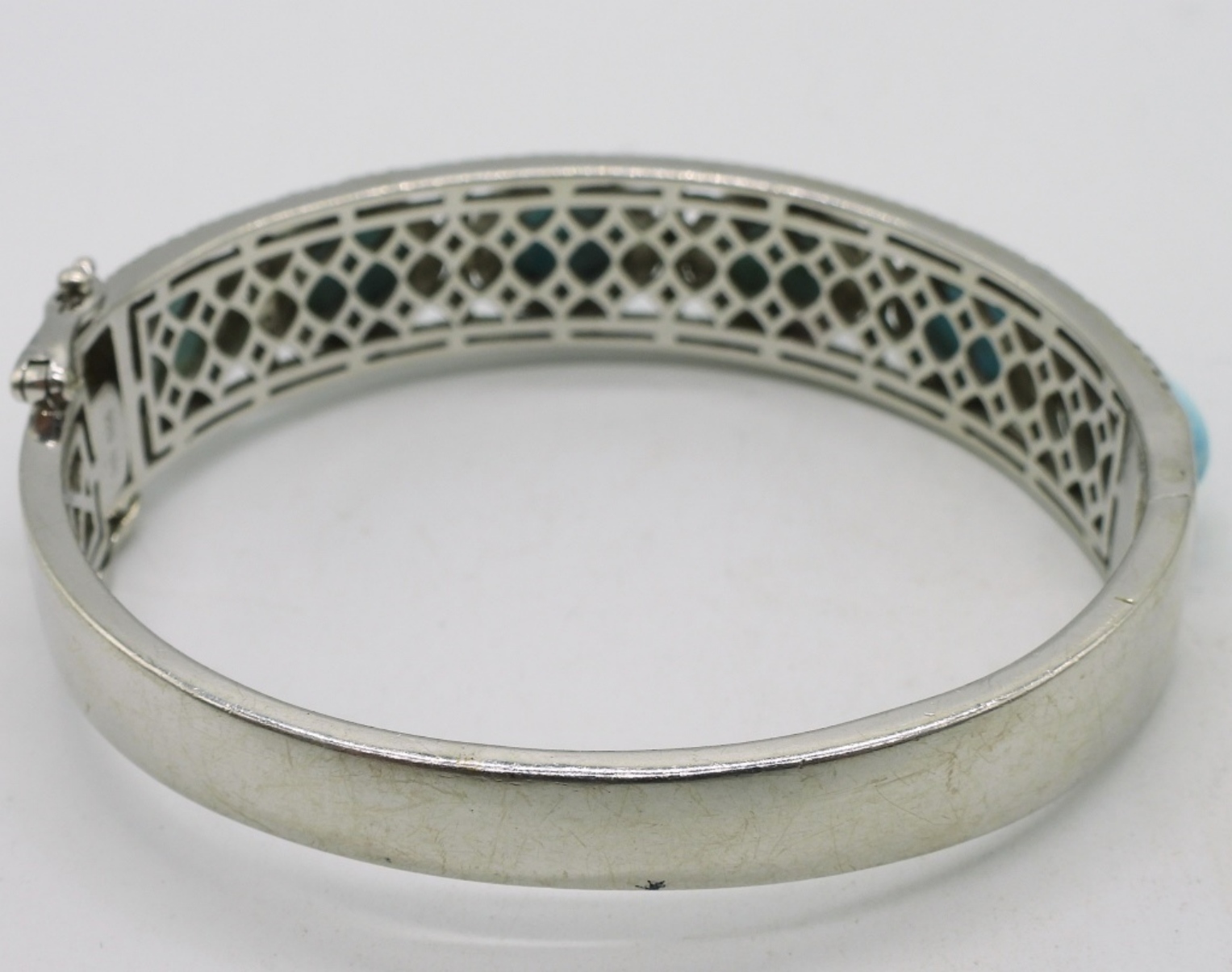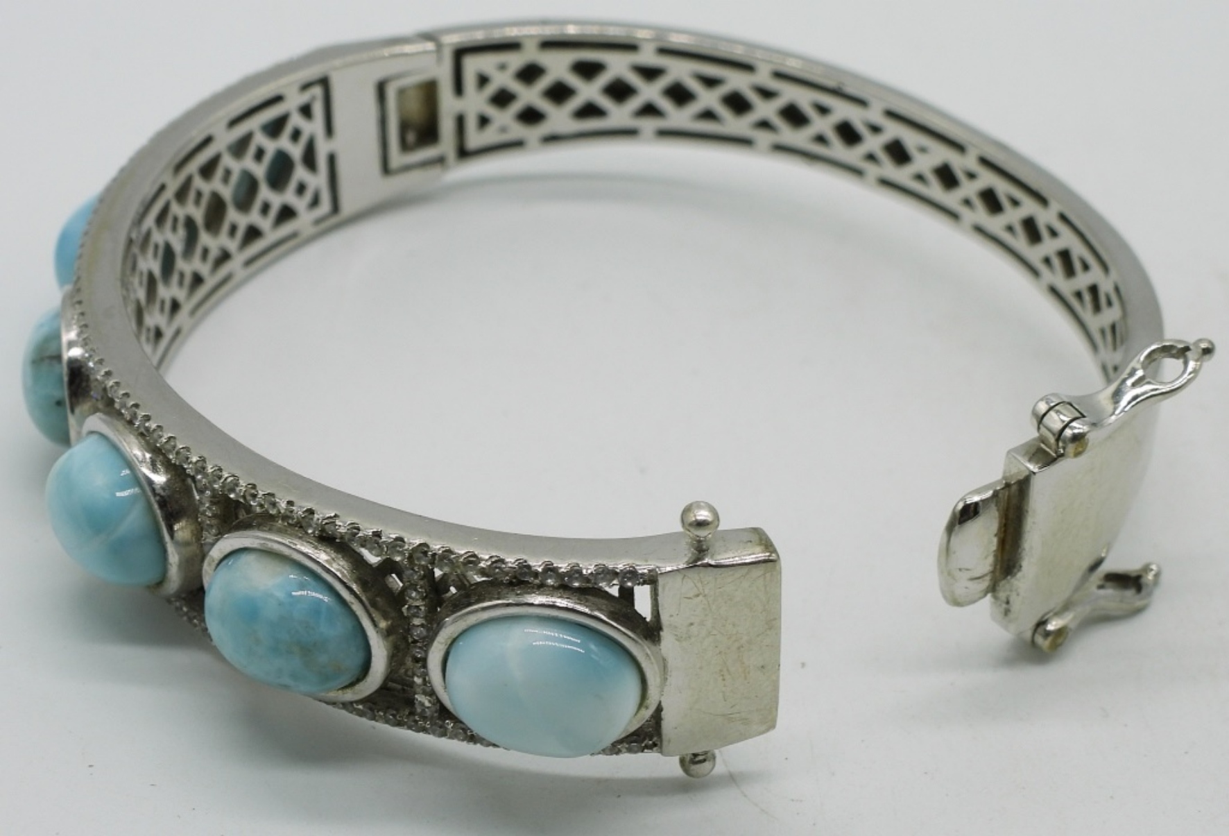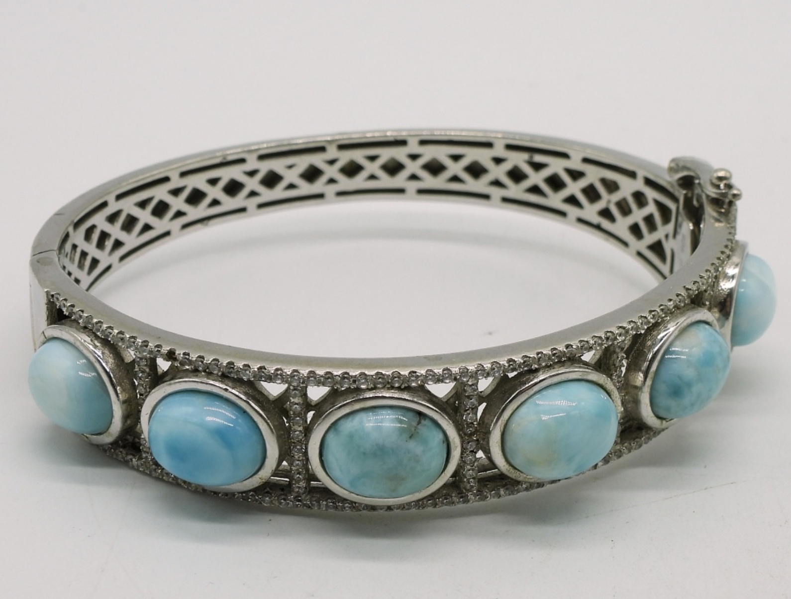 Larimar sterling hinged bangle bracelet. 6.5″ around inside. (22 dwt) (6x4x2)