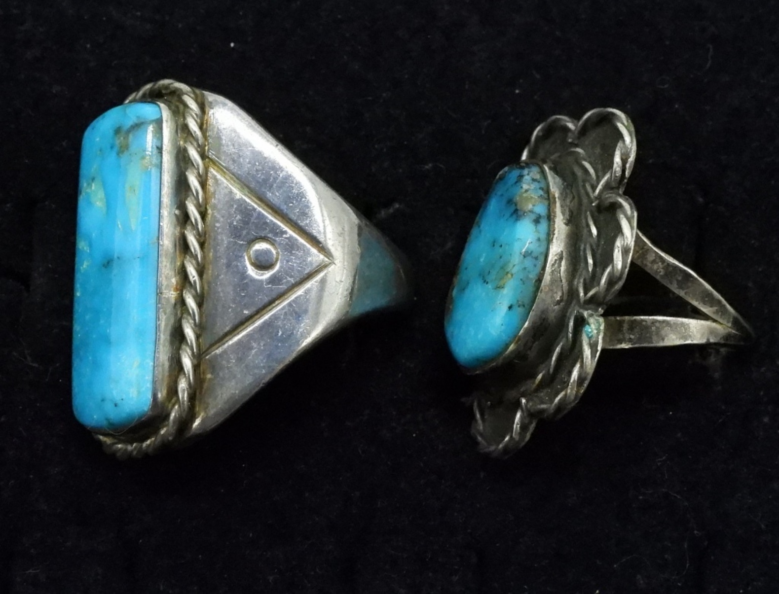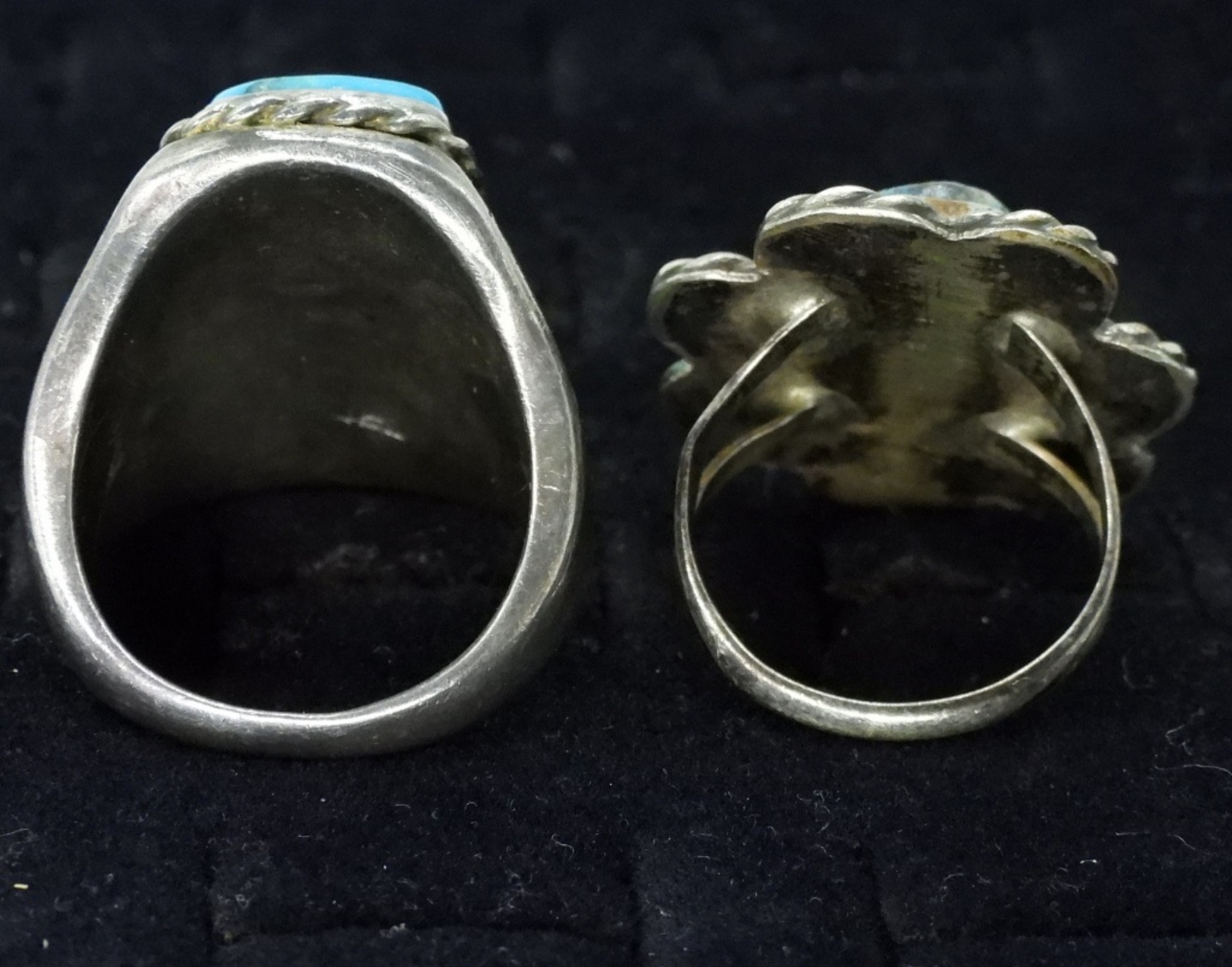 Two sterling rings with large turquoise gemstones, ring sizes 7 & 10. (20 dwt) (6x4x2)