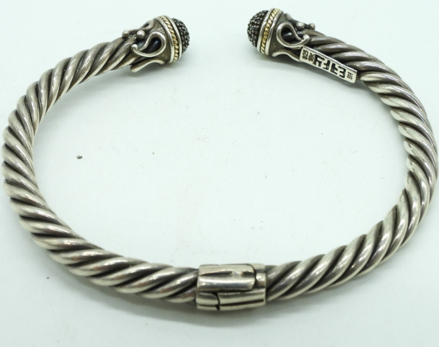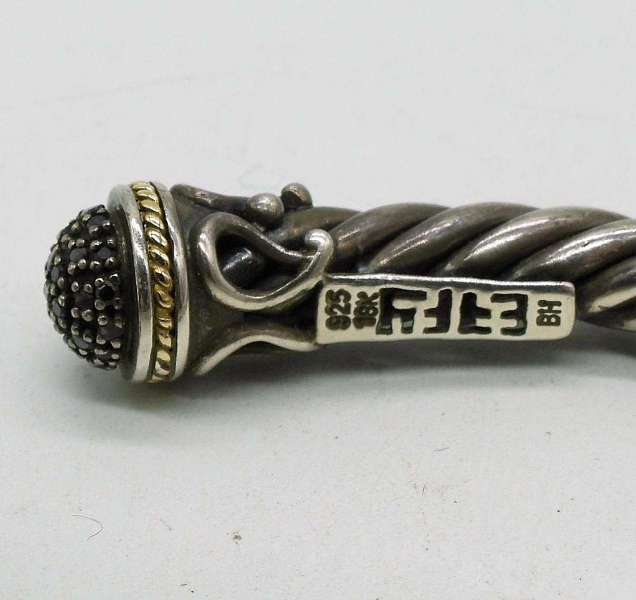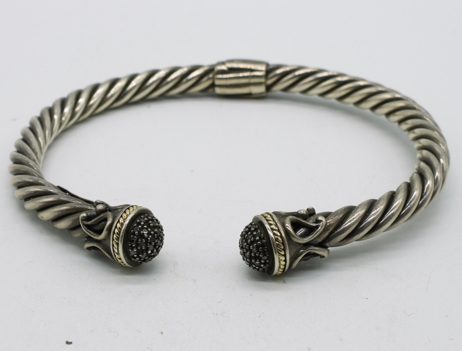 EFFY brand sterling bracelet with black moissanite gemstones and 18k gold accents (very small accents). (13.7 dwt) (6x4x2)