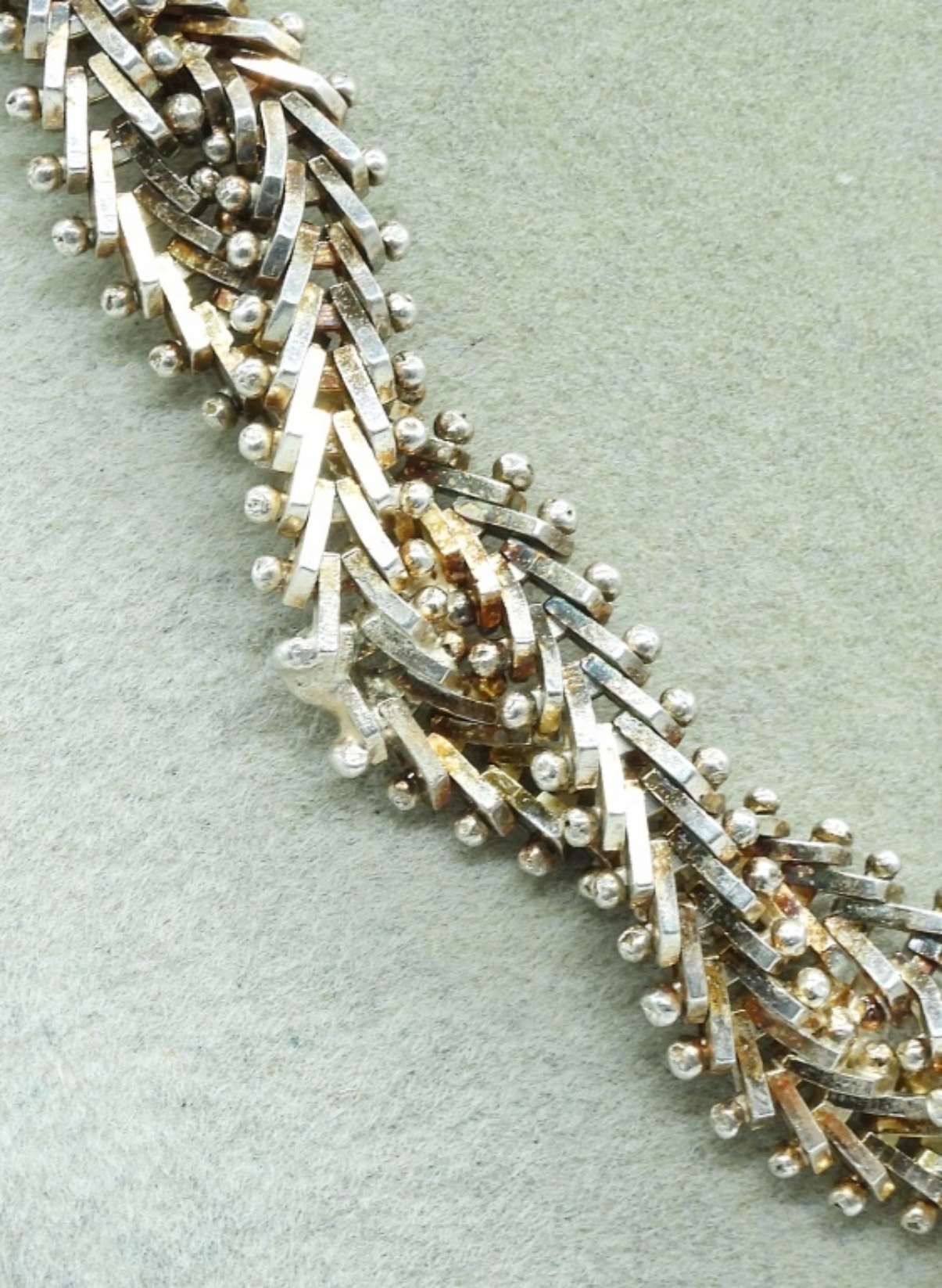 Vintage sterling and gold tone necklace, there is a spot that has been welded back together. 18″. (35.1 dwt)