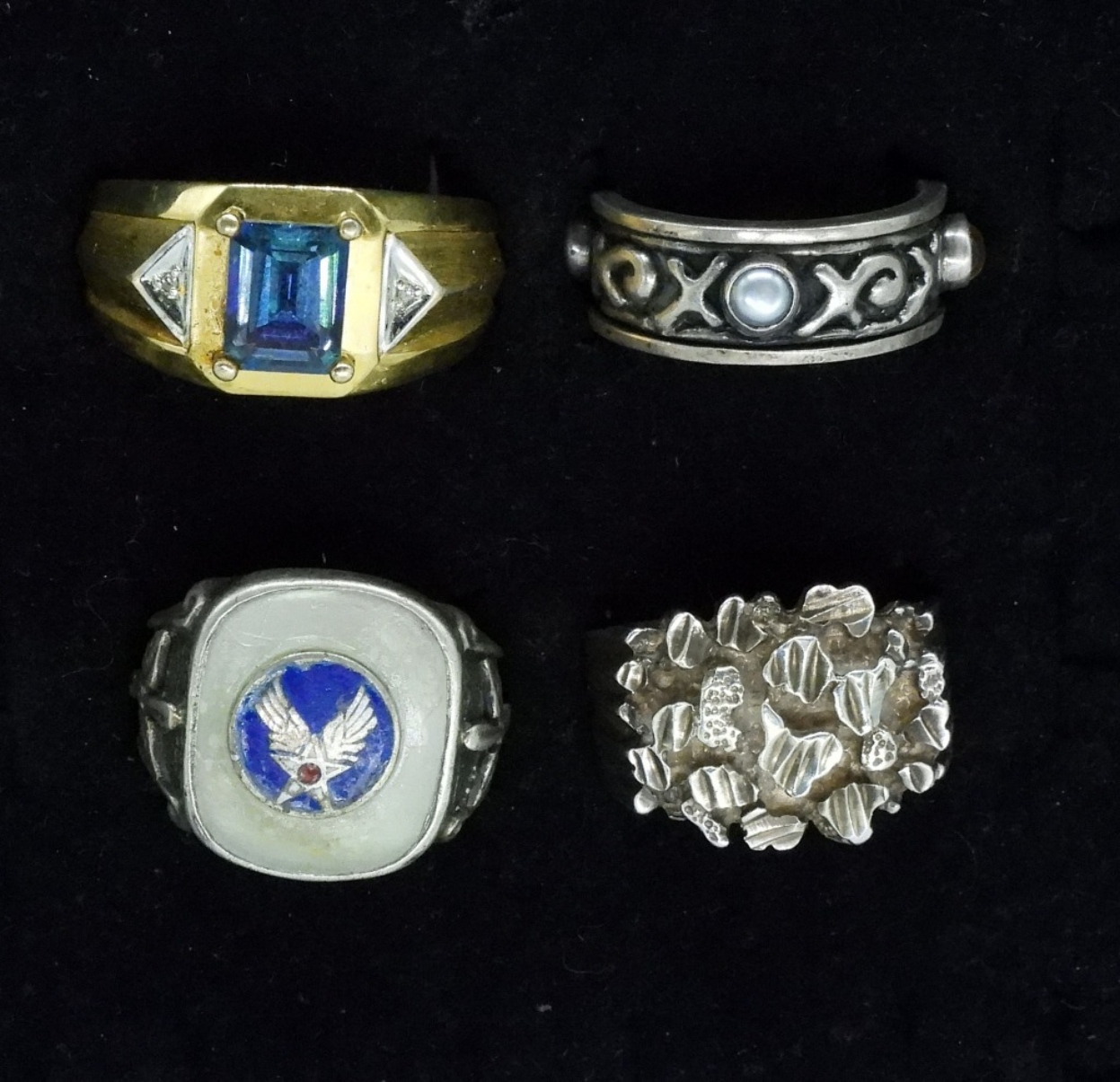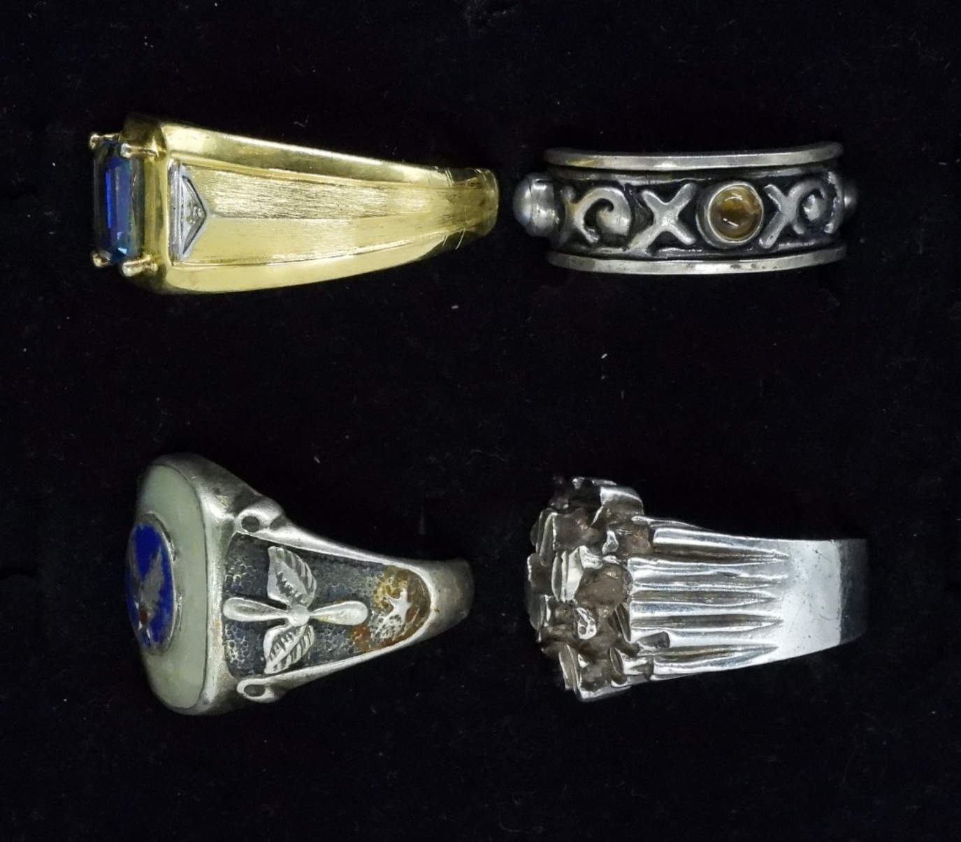 Four sterling mens fashion rings, sizes 9-13 (25.7 dwt) (6x4x2)