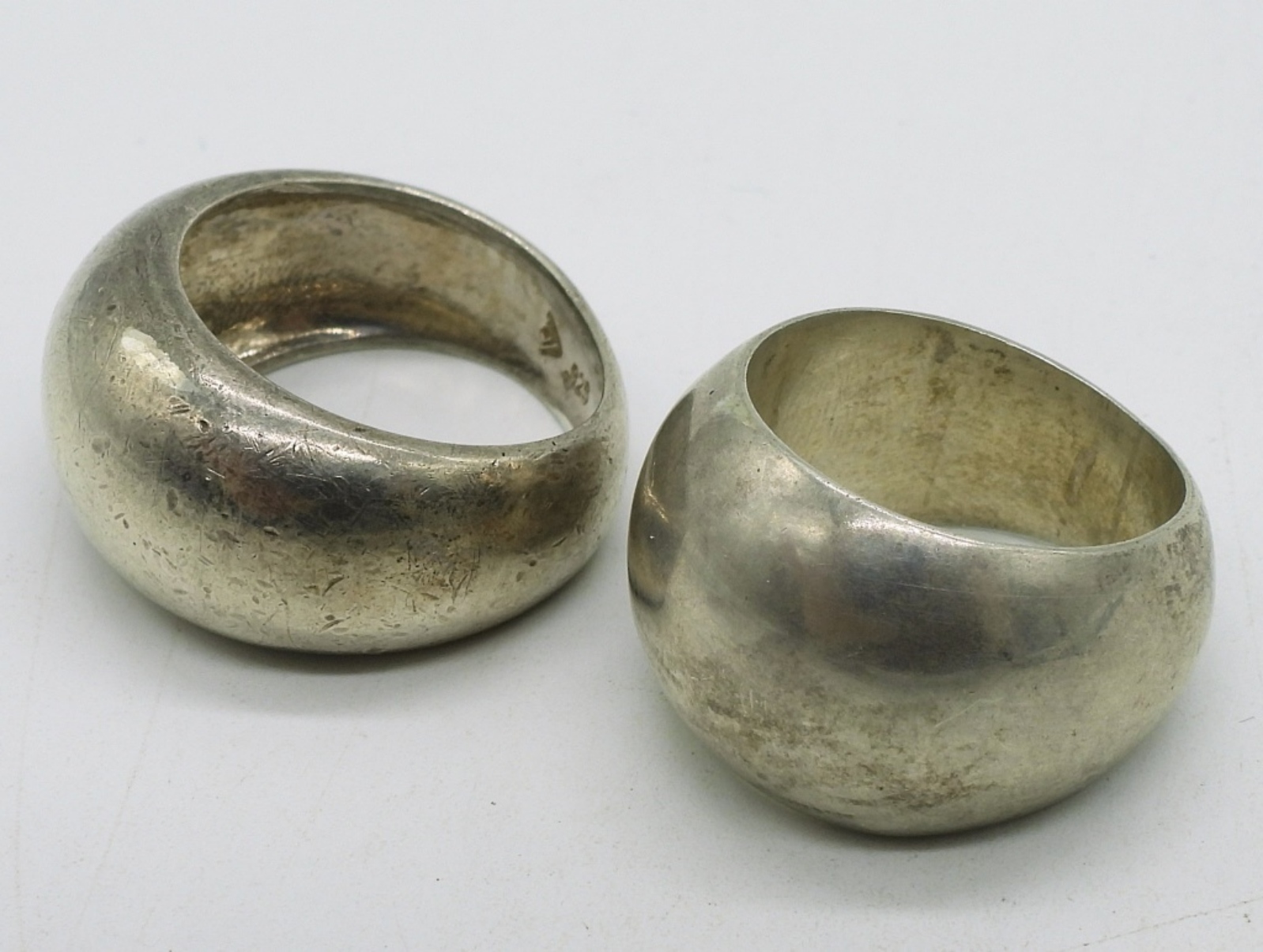Sterling whale pendant, 1 1/4″ wide. Sterling chain is 30″ long. Two sterling rings, sizes 7 & 8. (25.8 dwt)