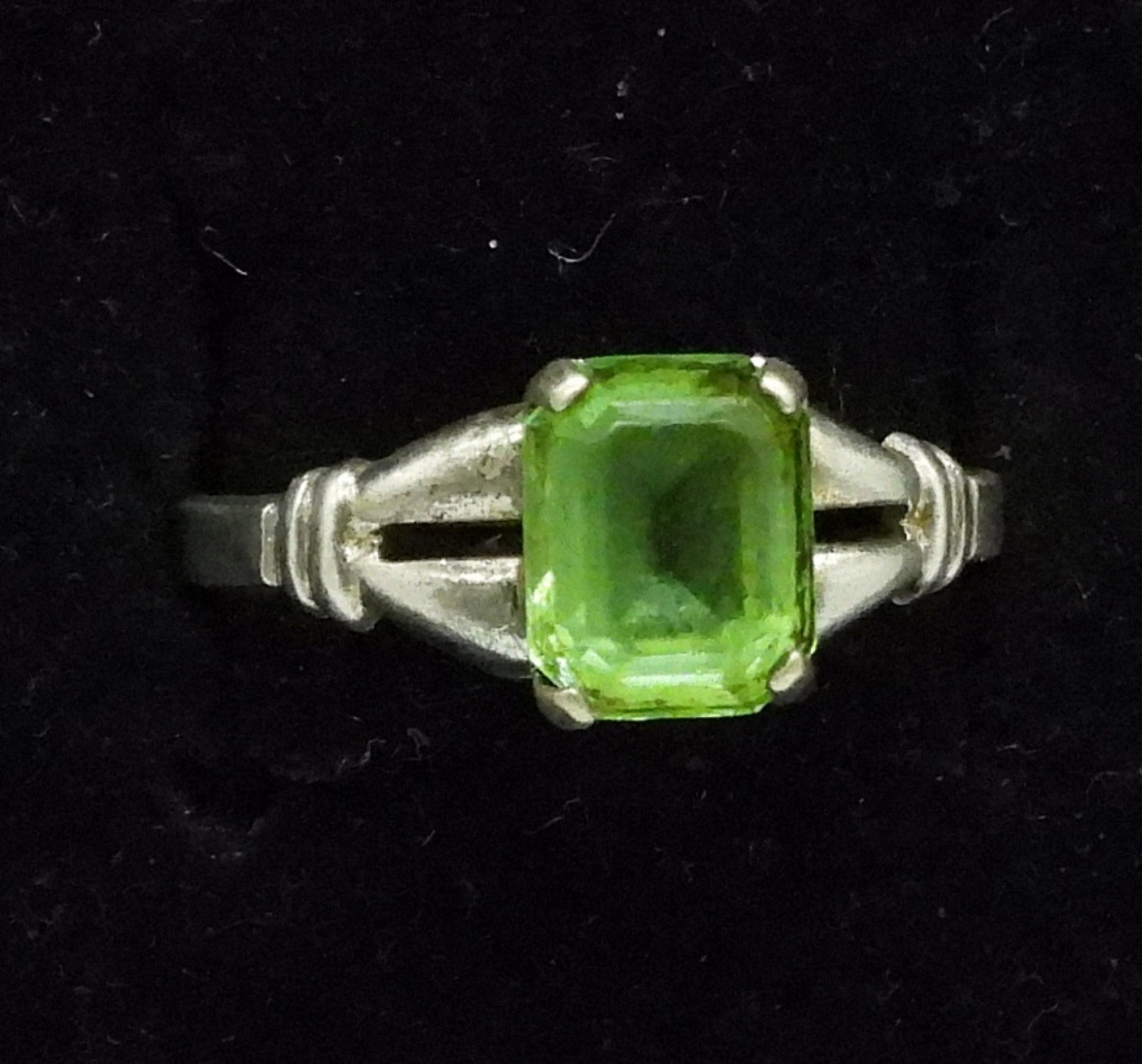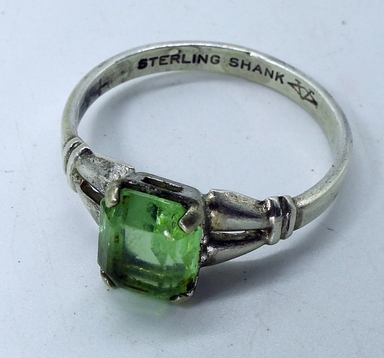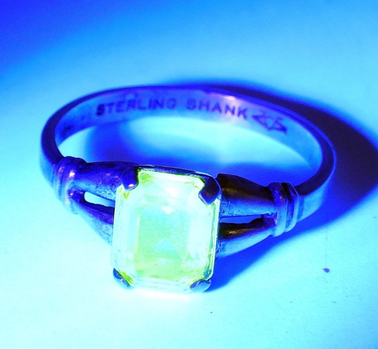 Uranium Glass Sterling Ring, Size 7.5 (1.4 dwt) (6x4x2)