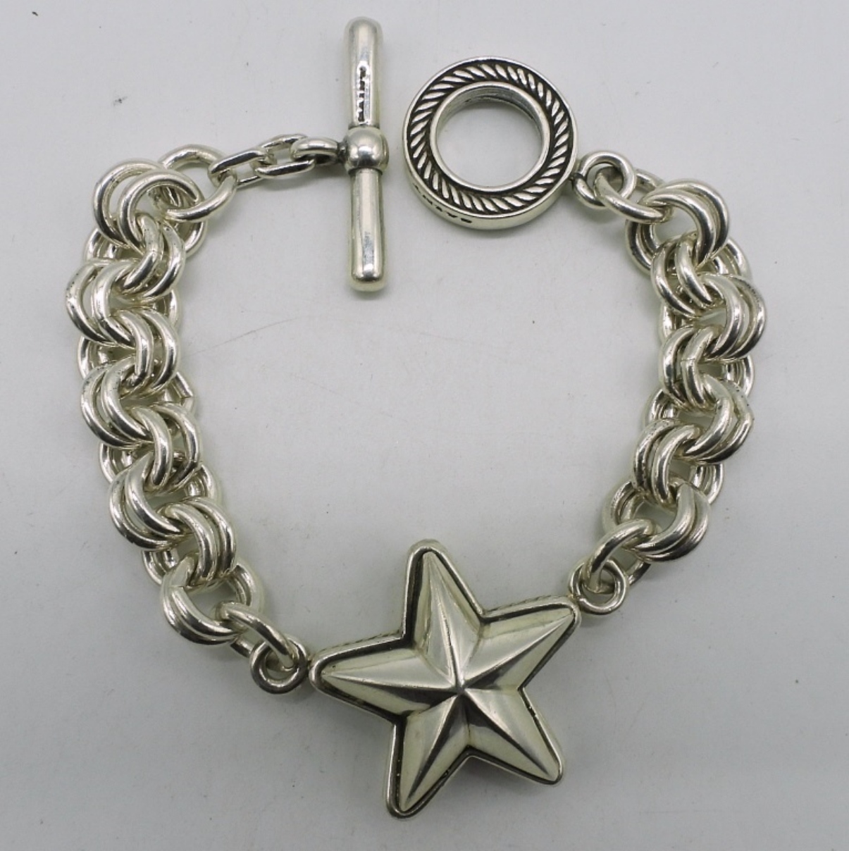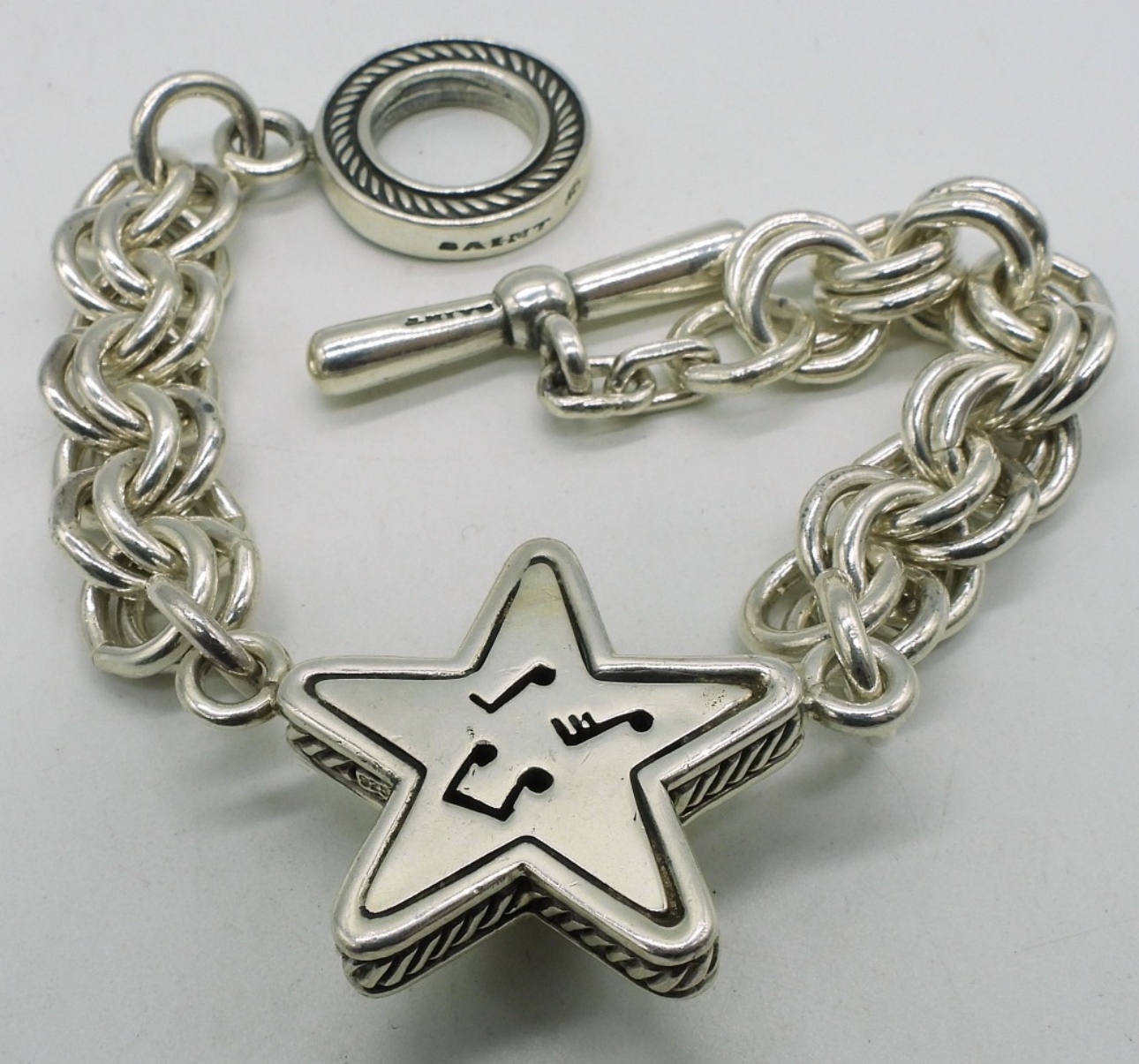 Heavy sterling star toggle bracelet, marked “Saint 925”. 7.5″ (47 dwt) 6x4x2