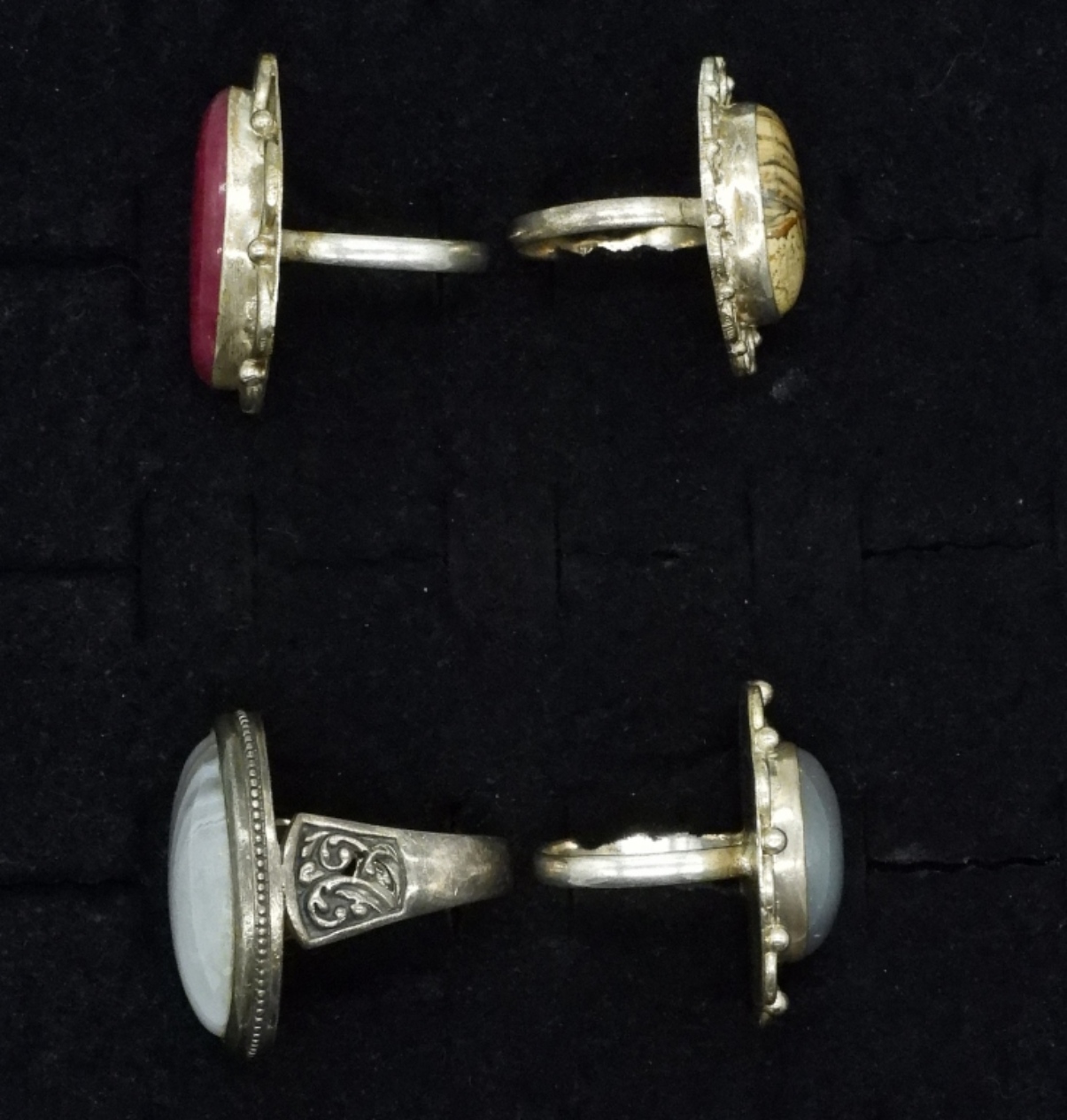 Four sterling large gemstone rings. Sizes 8-10 (25 dwt)