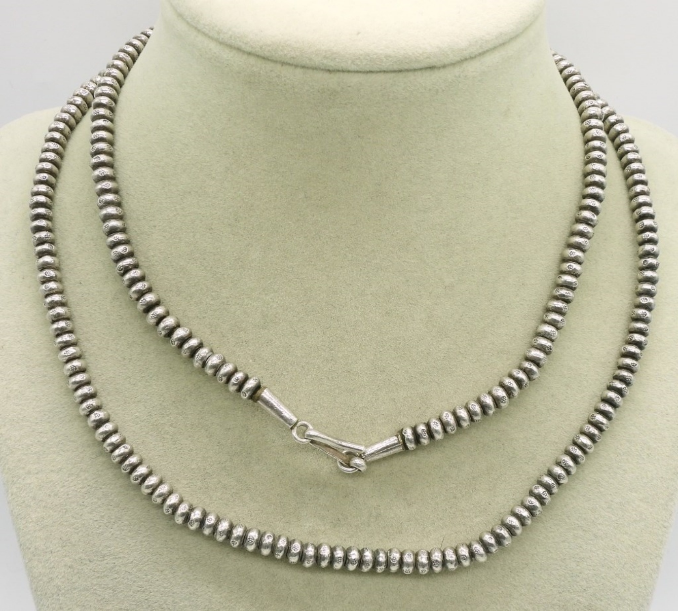 31″ Sterling saucer bead necklace. Very Heavy. (57 dwt) (6x4x2)