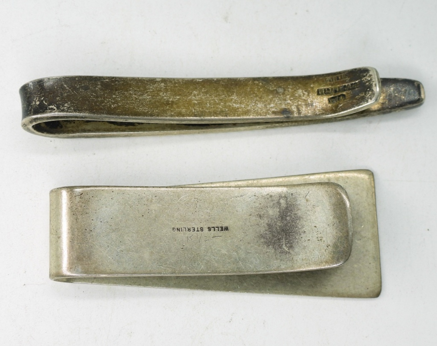 Vintage sterling money clip, 2″. Tie clip, 2.5″. (19.5 dwt)