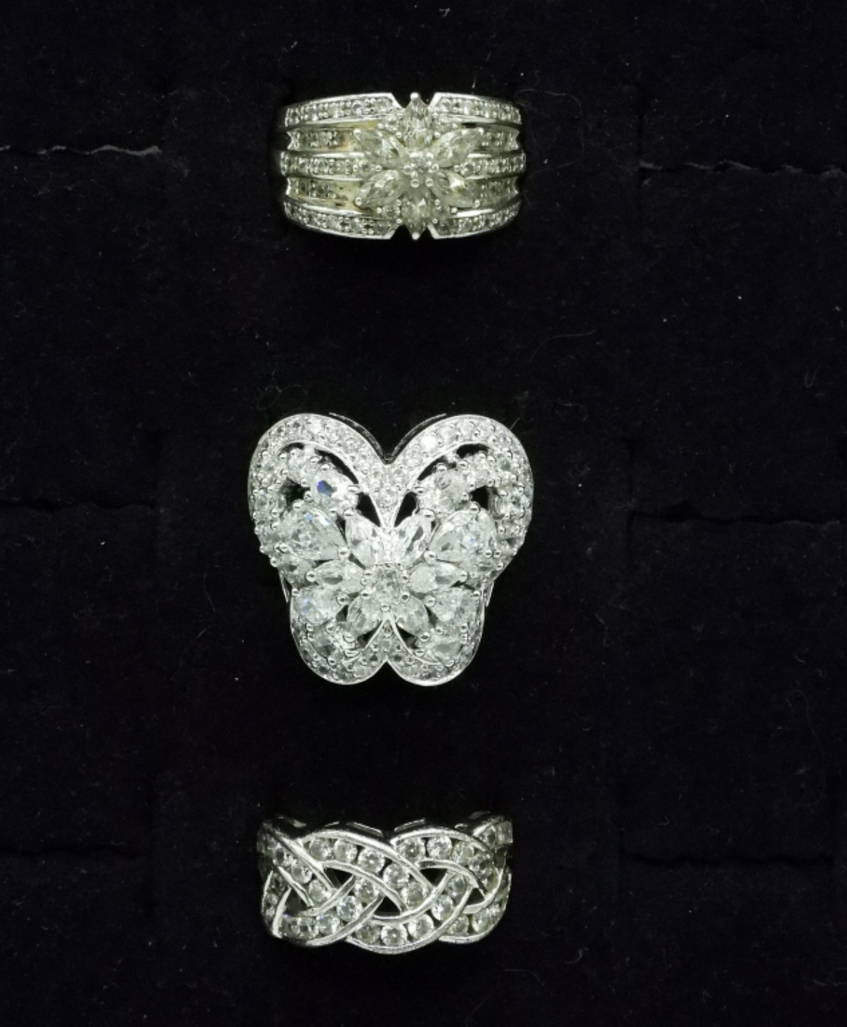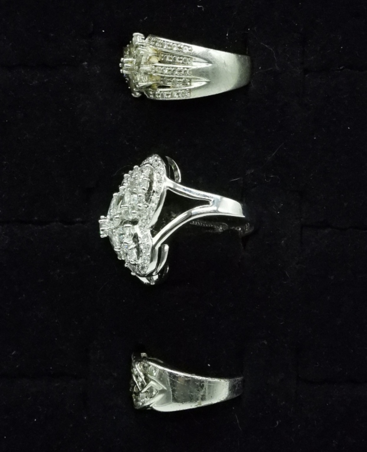 Three sterling rings with simulated diamonds. Sizes 6, 7, 8. (13 dwt) (6x4x2)