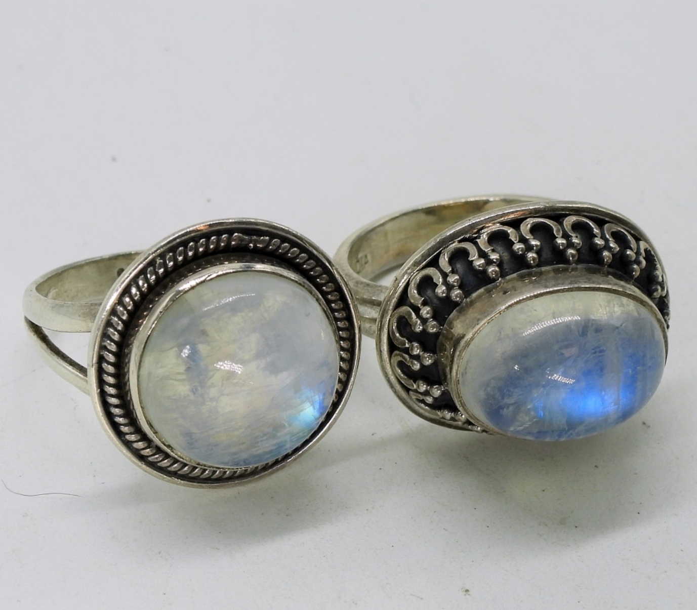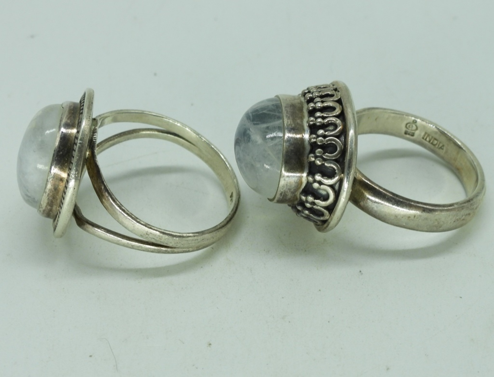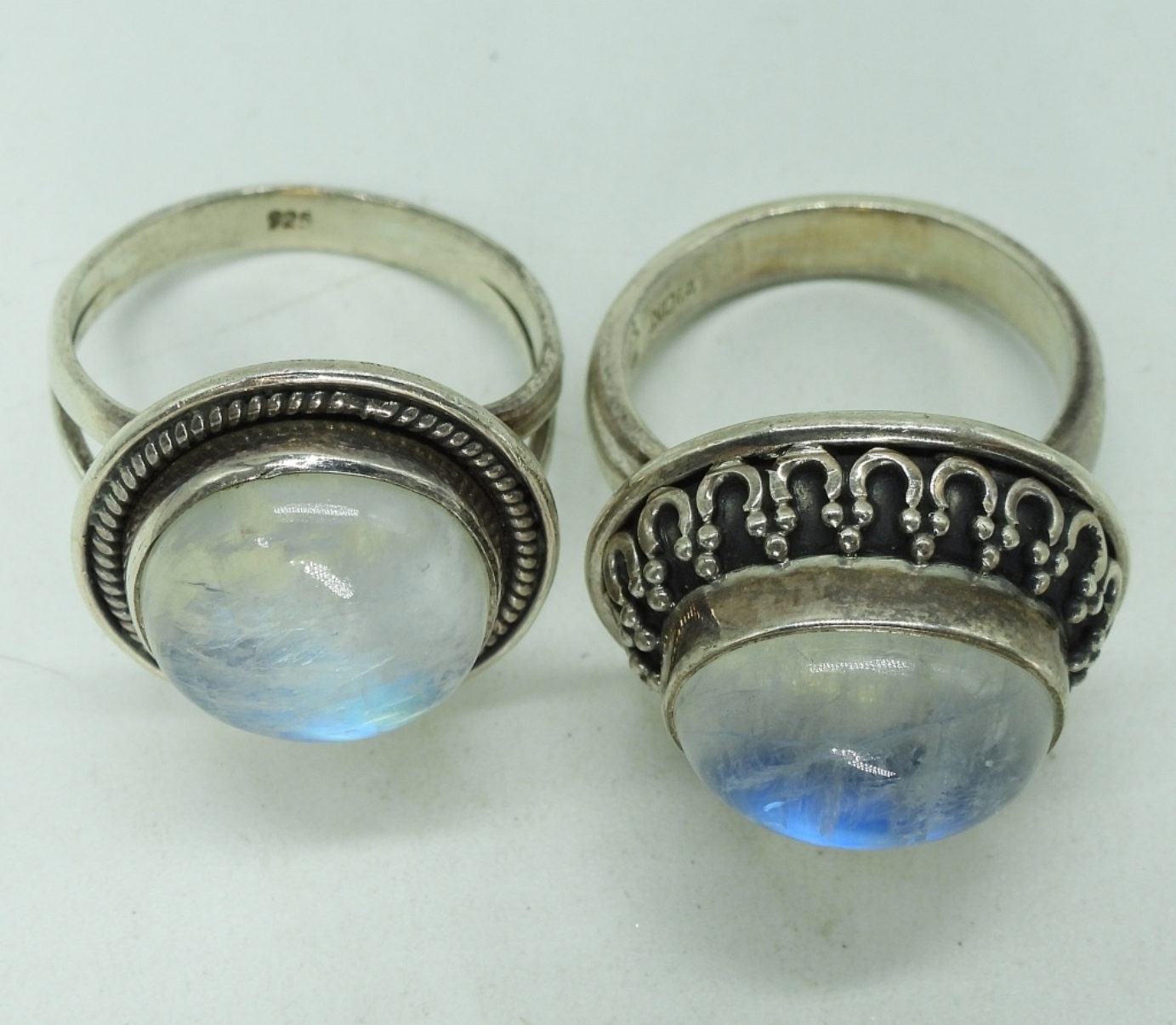 Two beautiful sterling moonstone rings, size 7 & 8. (9.4 dwt) (6x4x2)